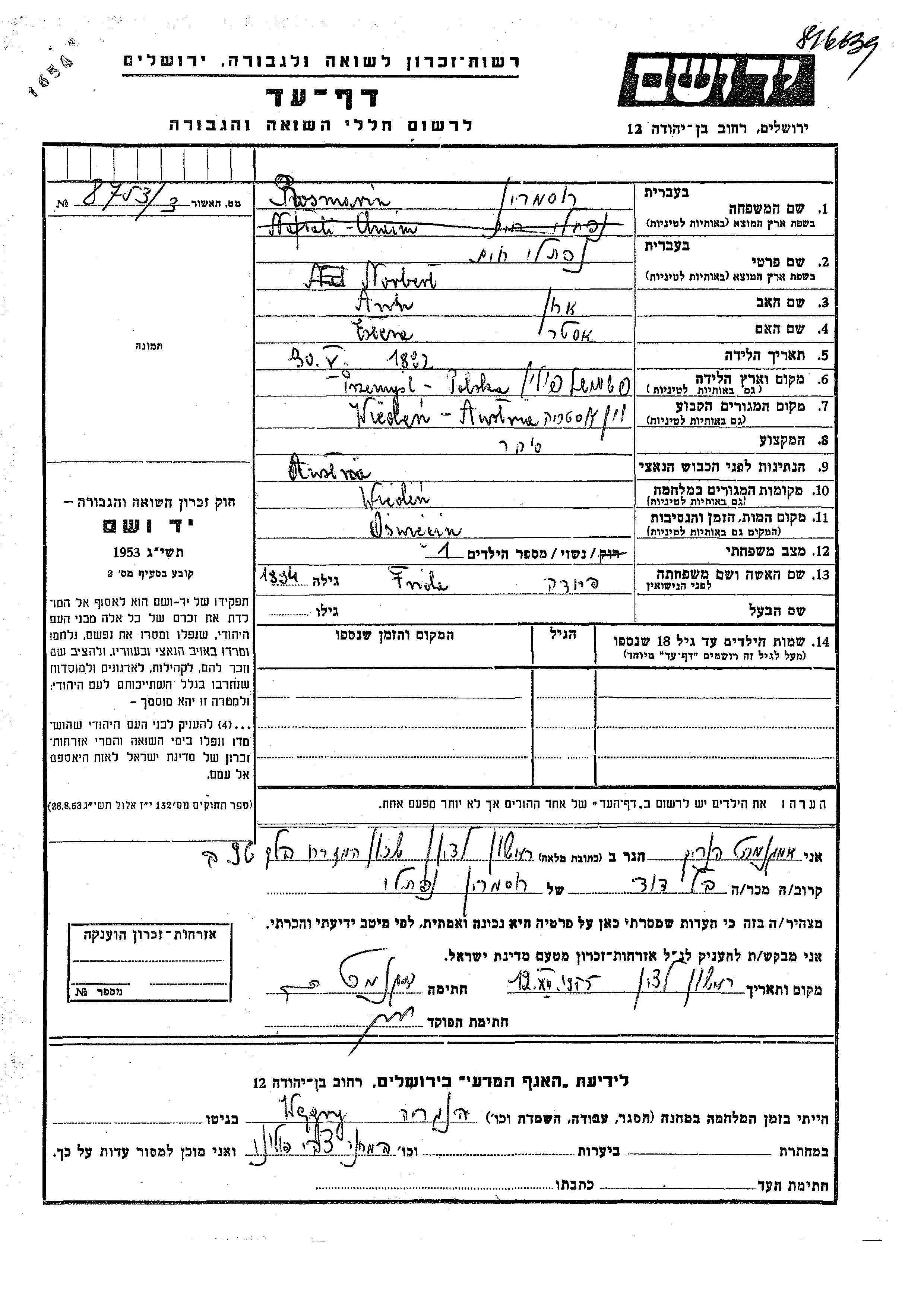 Rozmarin Norbert Naftalie Chanina 1892 Przemysl, Polen Liste von ermordeten oesterreichischen Juden
