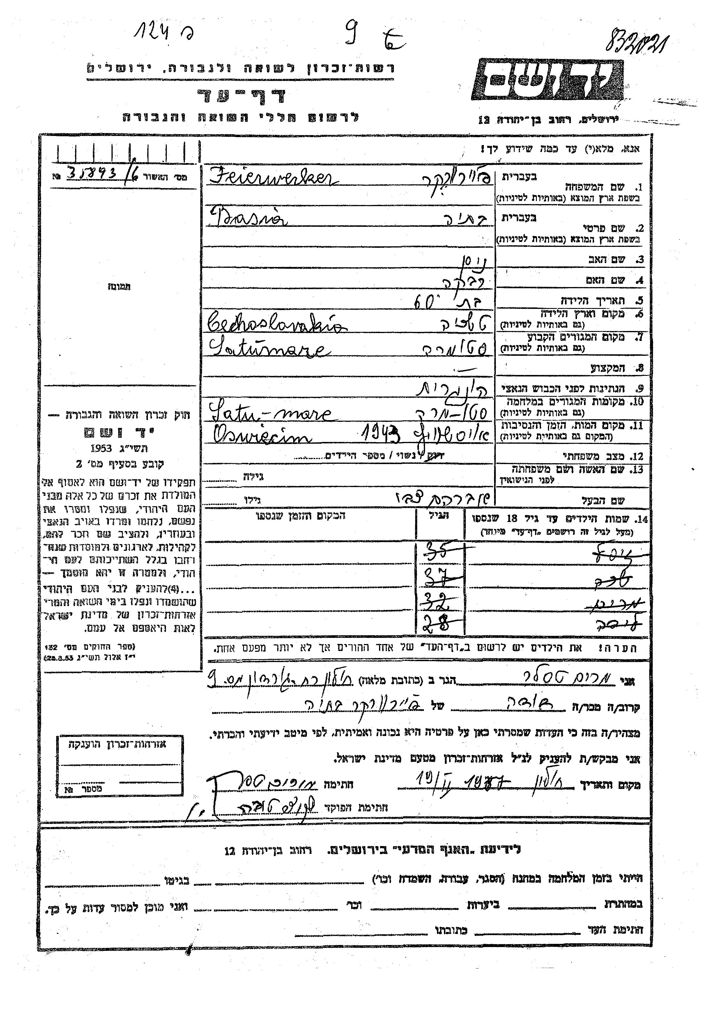Feierwerker | Basia | Satumare, Rumänien | Gedenkblatt | |