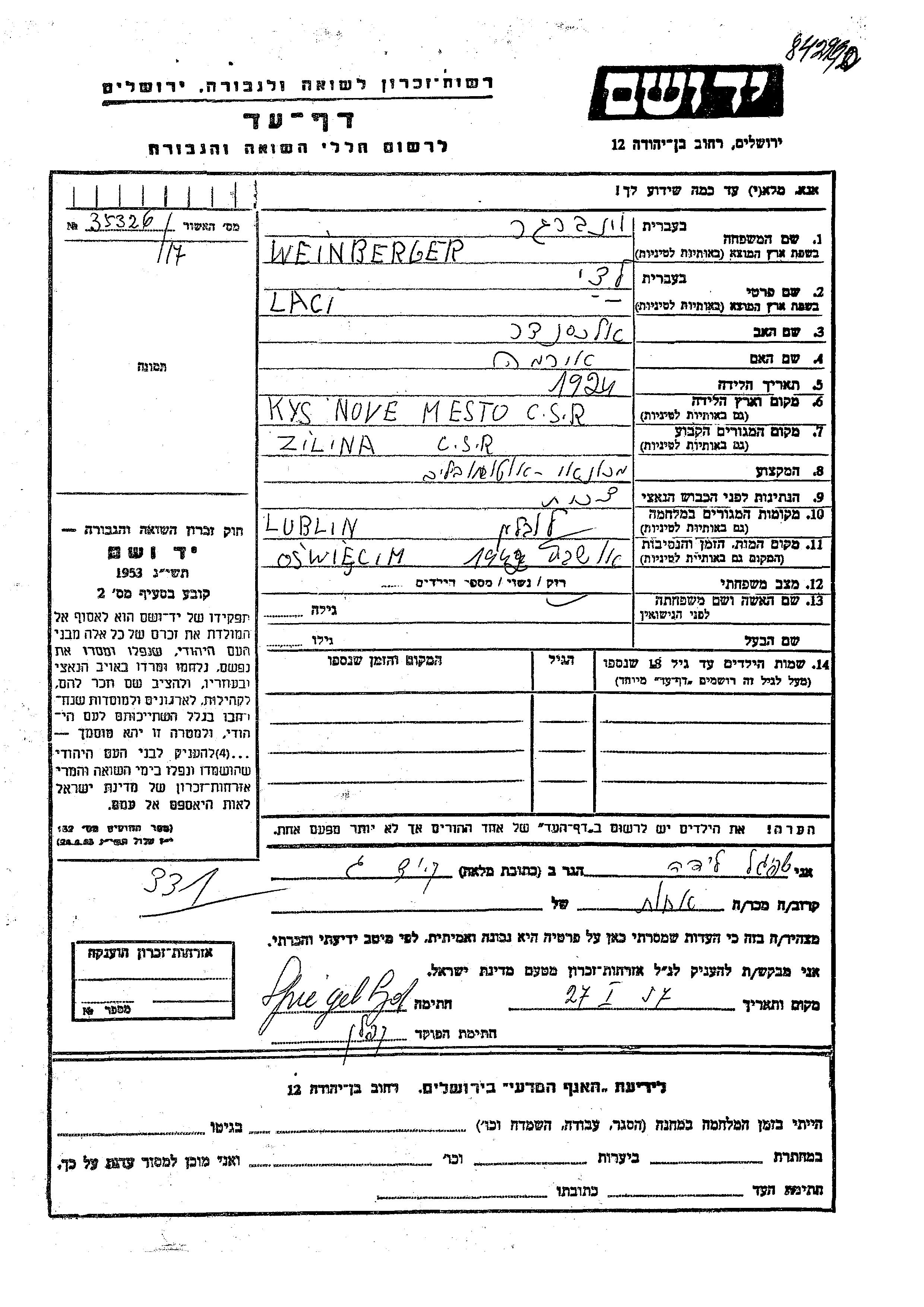 Ladislav Laci Weinberger wurde im Jahr 1924 in Kysucke Nove Mesto, Tschechoslowakei geboren. Er war Mechaniker/-in. Vor dem Zweiten Weltkrieg lebte er in Zilina, Tschechoslowakei.