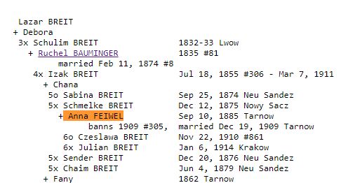 Ana Breit wurde im Jahr 1885 in Tarnow, Polen geboren. Vor dem Zweiten Weltkrieg lebte sie in Krakow, Polen.