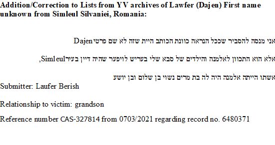 Suche nach dem Vornamen des Einreichenden eines Gedenkblattes, unter Berücksichtigung von Verniedlichungen und Spitznamen.