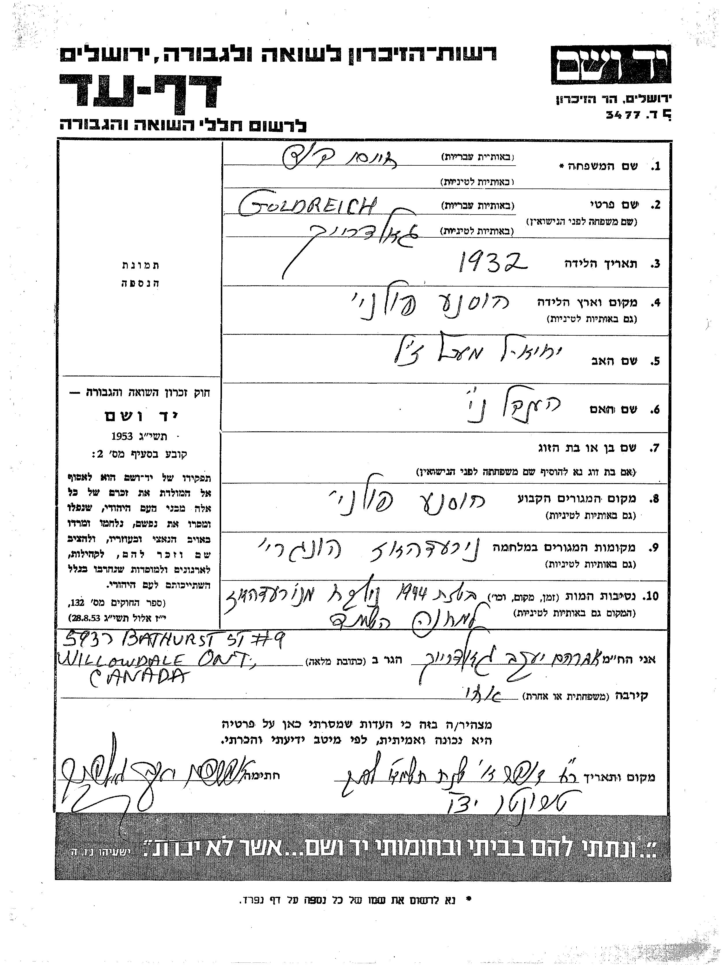 Khaim David Goldreich wurde im Jahr 1932 in Husne Nizne, Polen geboren. Er war der Sohn von Yekhiel Mekhl und Hindel. Vor dem Zweiten Weltkrieg lebte er in Husne Nizne, Polen. Während des Krieges war er in Nyiregyhaza, Ungarn.