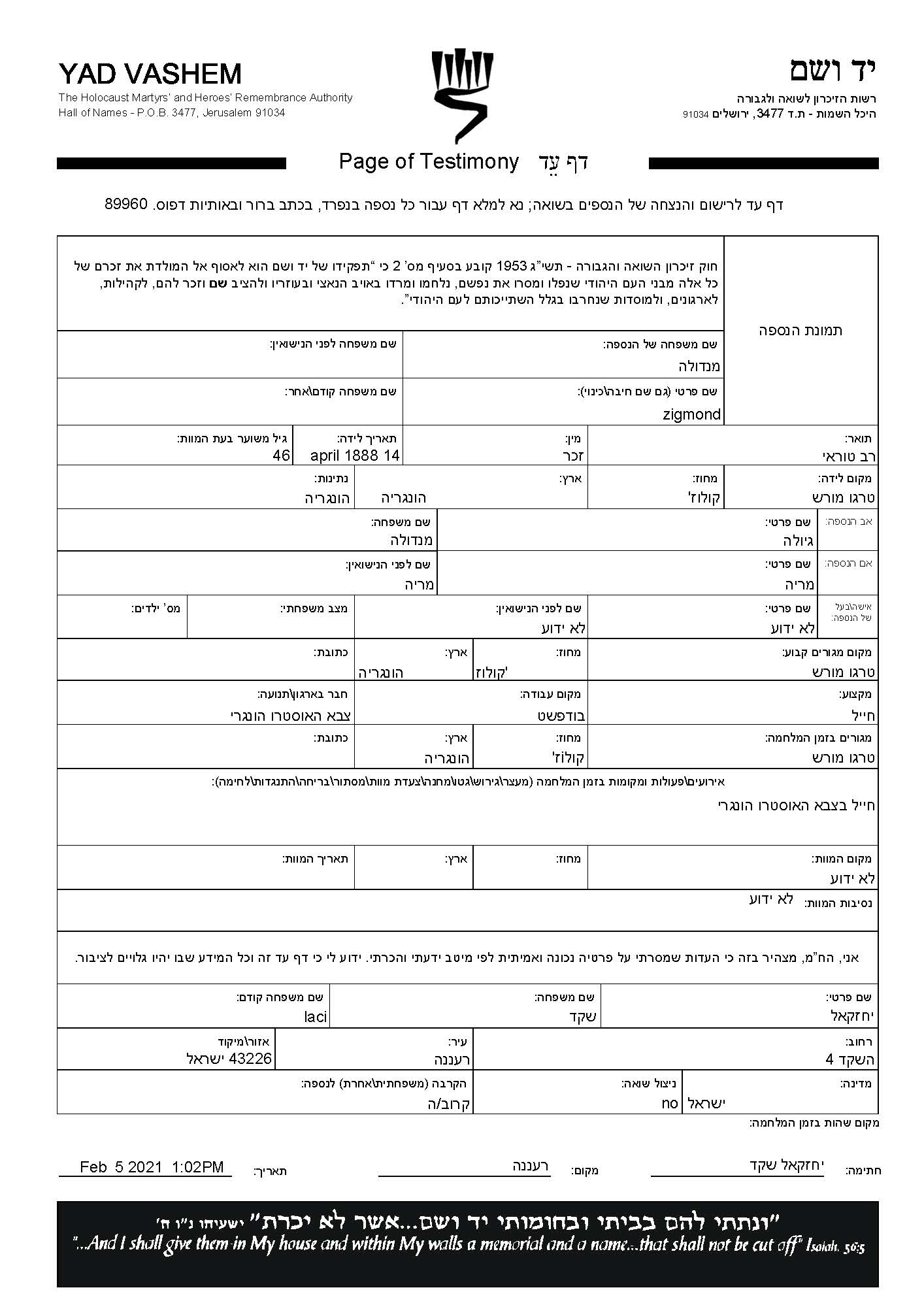 Mandula | Zigmond | 14/04/1888 | Targu Mures, Rumänien | Photos |