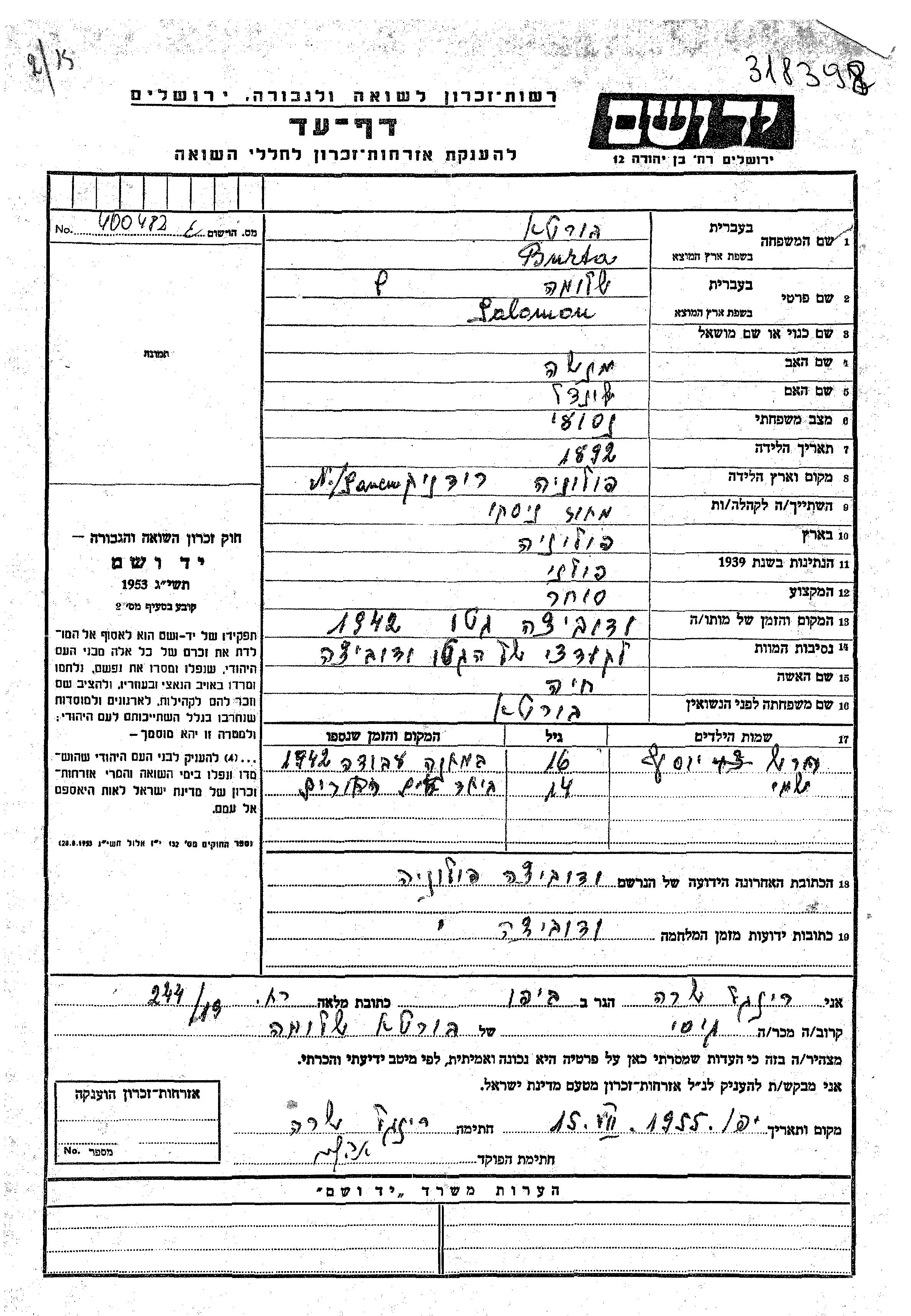 Juden wurden in der Schoah auf verschiedenste Weisen ermordet, unter anderem: Vergasen, Erschiessen, lebendig verbrannt werden, lebendig begraben werden, Tod durch Erschöpfung durch Zwangsarbeit, Epidemien, mangels jeder hygienischer Bedingung oder dem Fehlen medizinischer Versorgung. Manche Juden nahmen sich das Leben, um der Festnahme und weiterer Verfolgung zu entgehen oder ihr hoffnungsloses, nicht nachlassendes Leiden zu beenden.