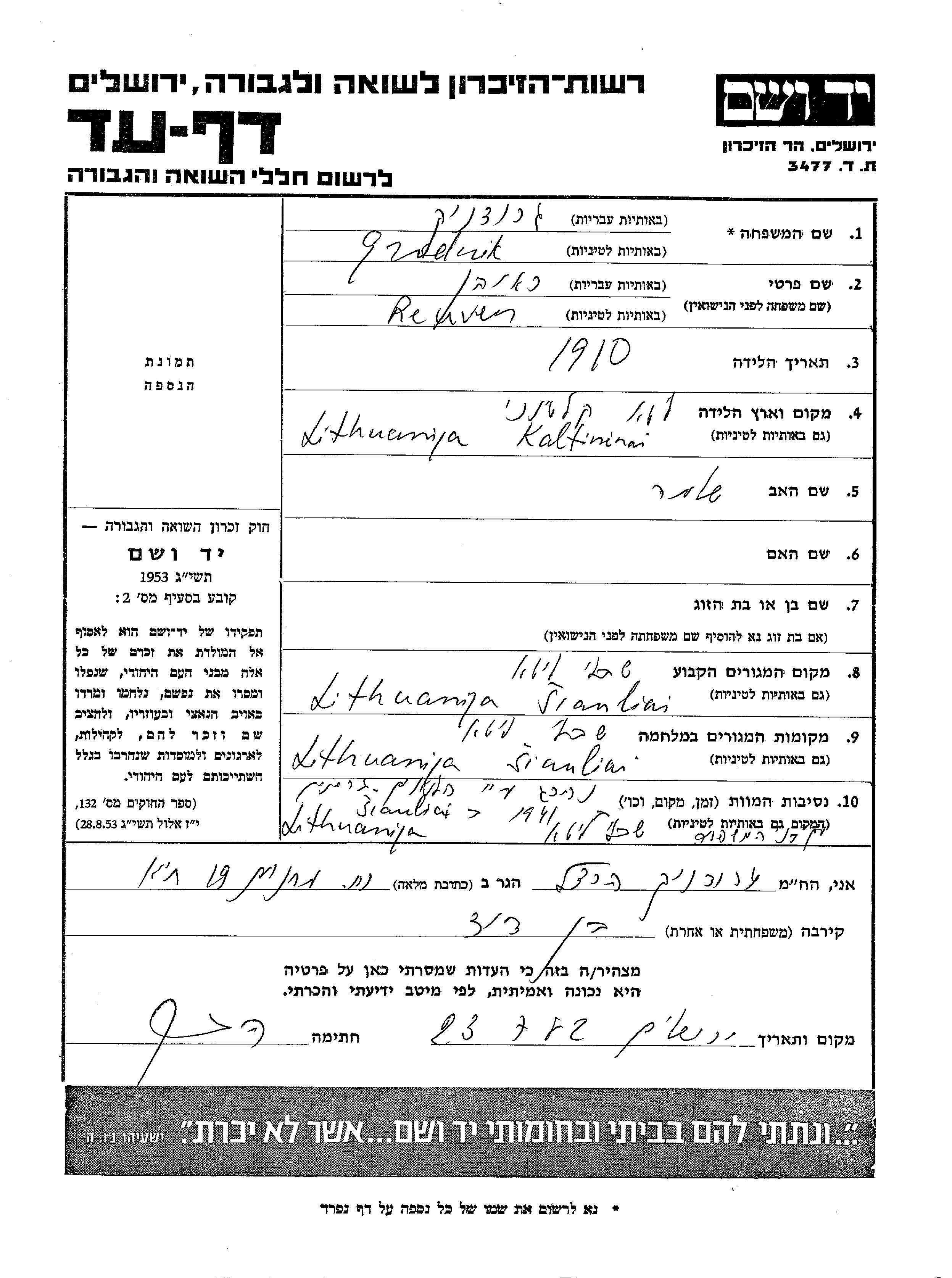 Reuven wurde in der Schoah ermordet. Todesort: Siauliai, Litauen im Jahr 1941.