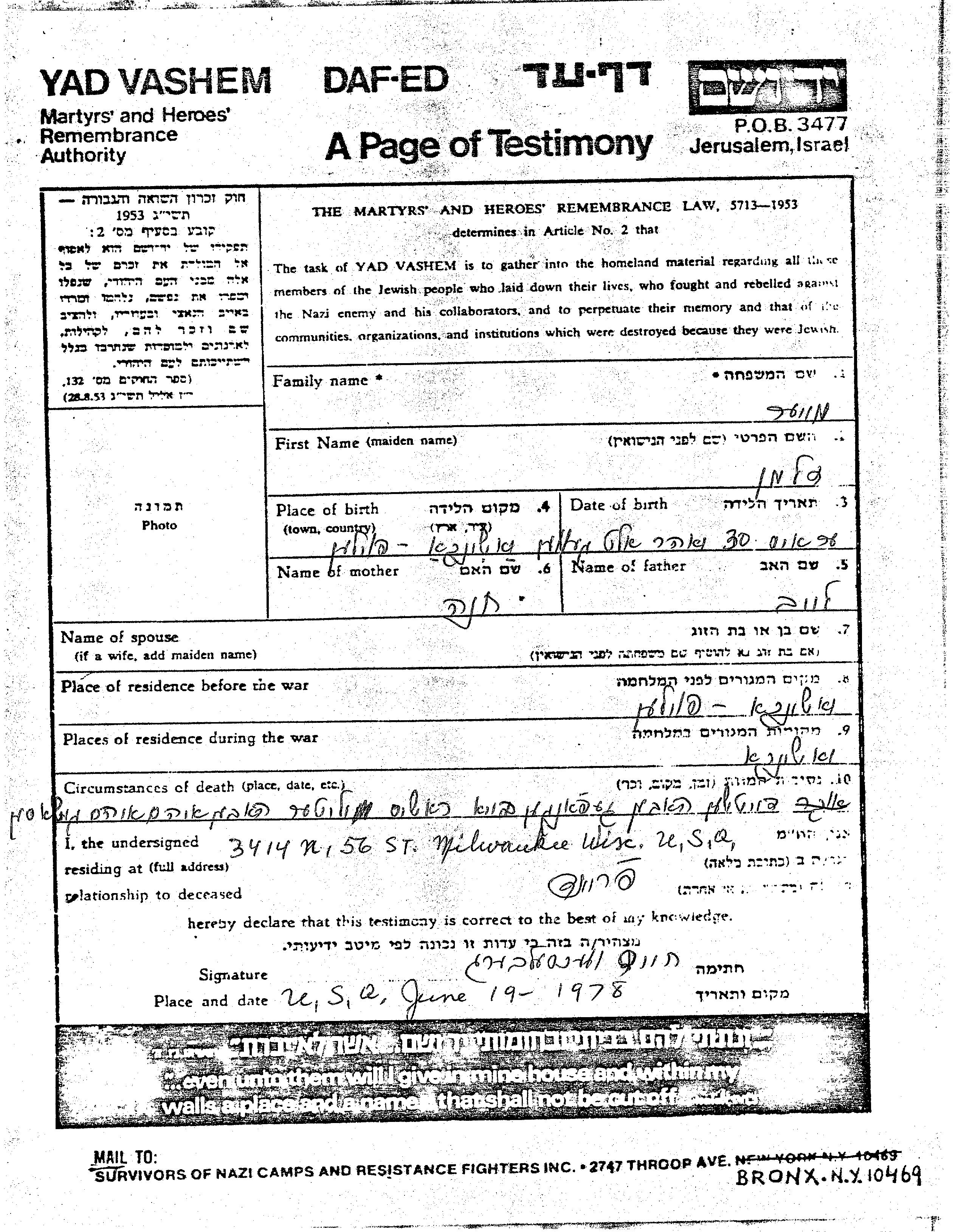 Zalman wurde in der Schoah ermordet.