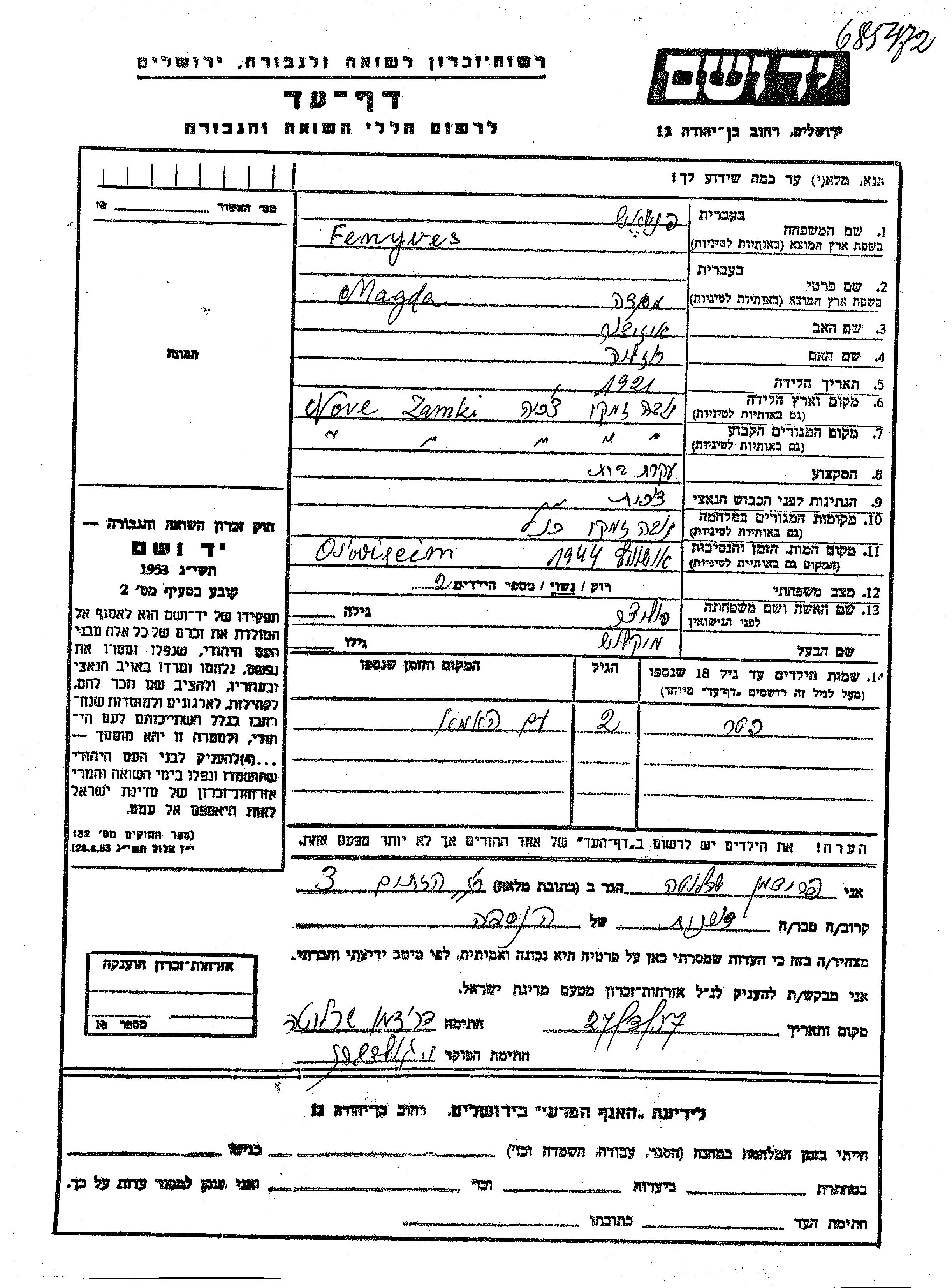 Magda wurde in der Schoah ermordet. Todesort: Auschwitz, Polen im Jahr 1944.