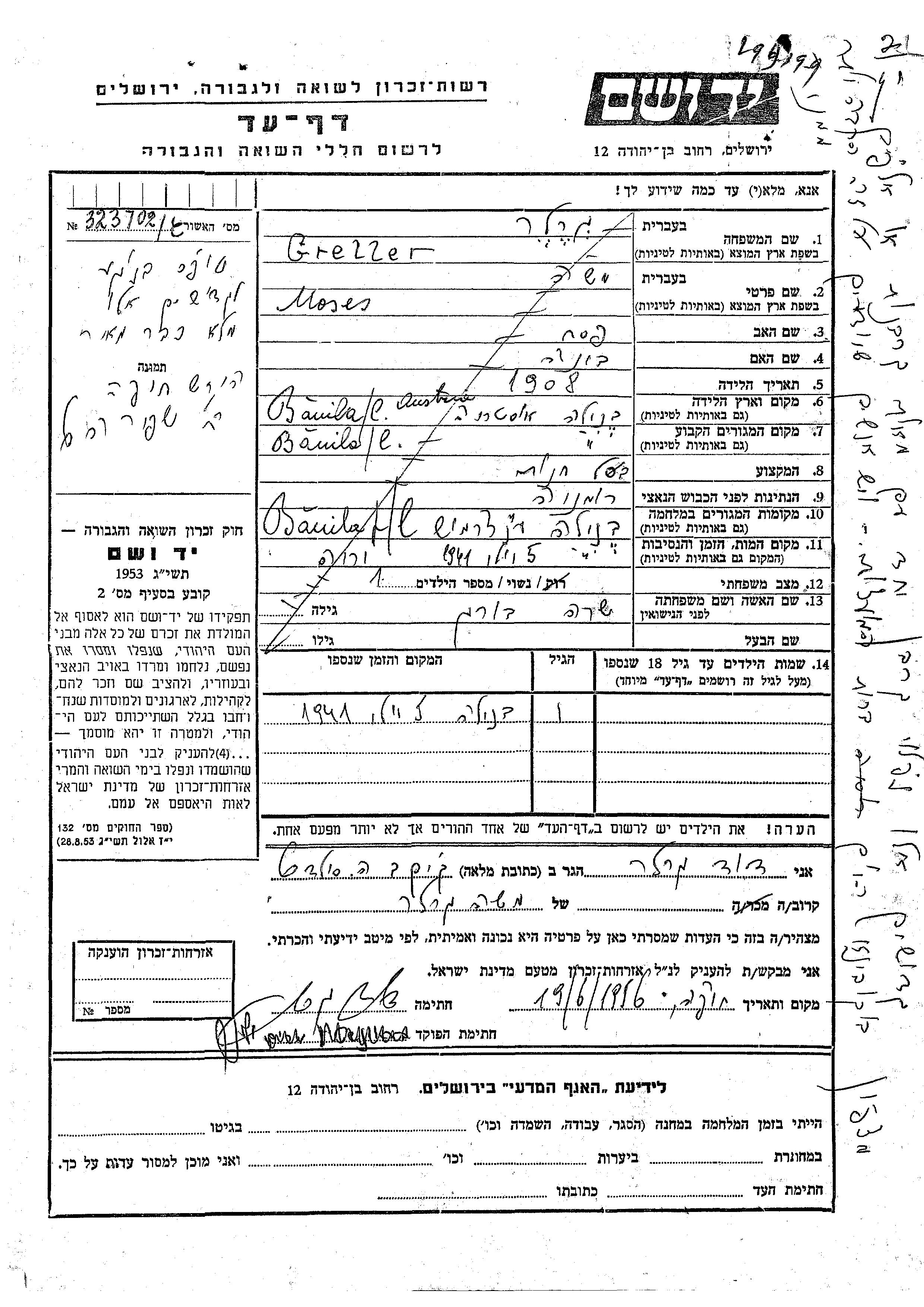 Mosche wurde in der Schoah ermordet. Todesort: unbekannt im Jahr 05/06/1941.