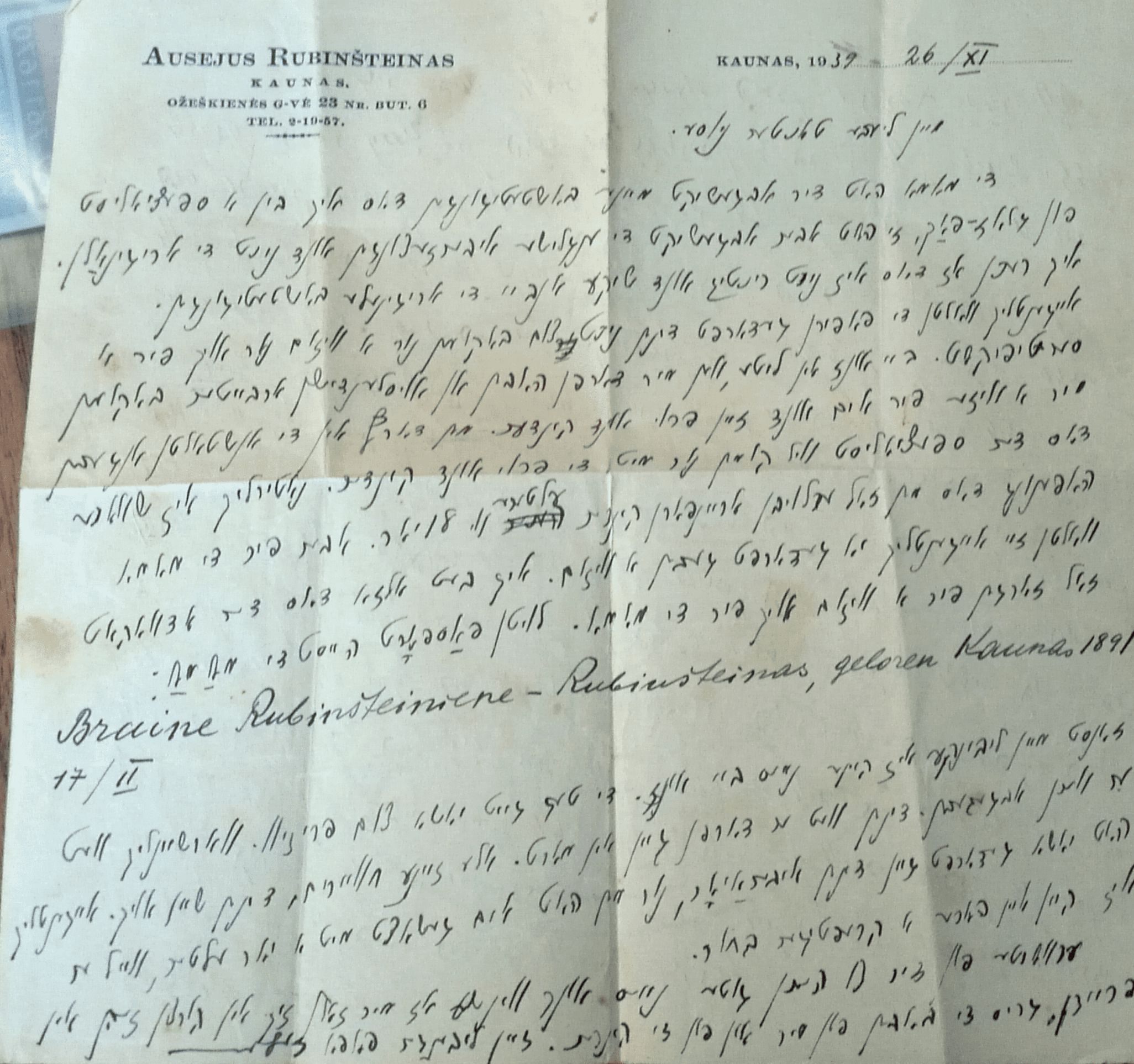 Letter: Berta Braina Brainė Gitelė Rubinsztejn Rubinshtein