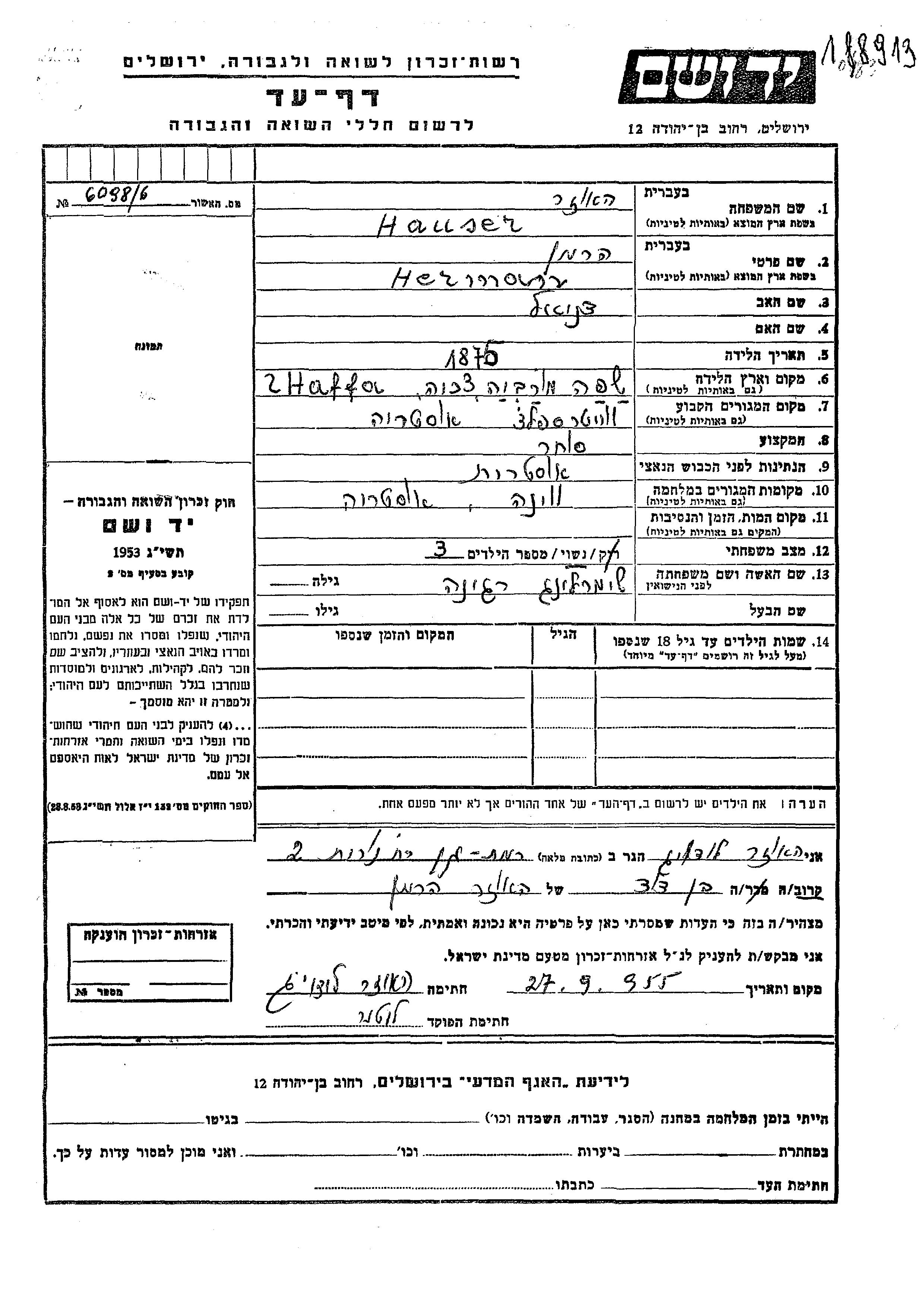 Hermann Hauzer wurde im Jahr 1875 geboren. Er war der Sohn von Daniel. Er war Kaufmann/-frau und mit Regina, geb. Shimerling Verheiratet. Während des Krieges war er in Wien, Österreich.