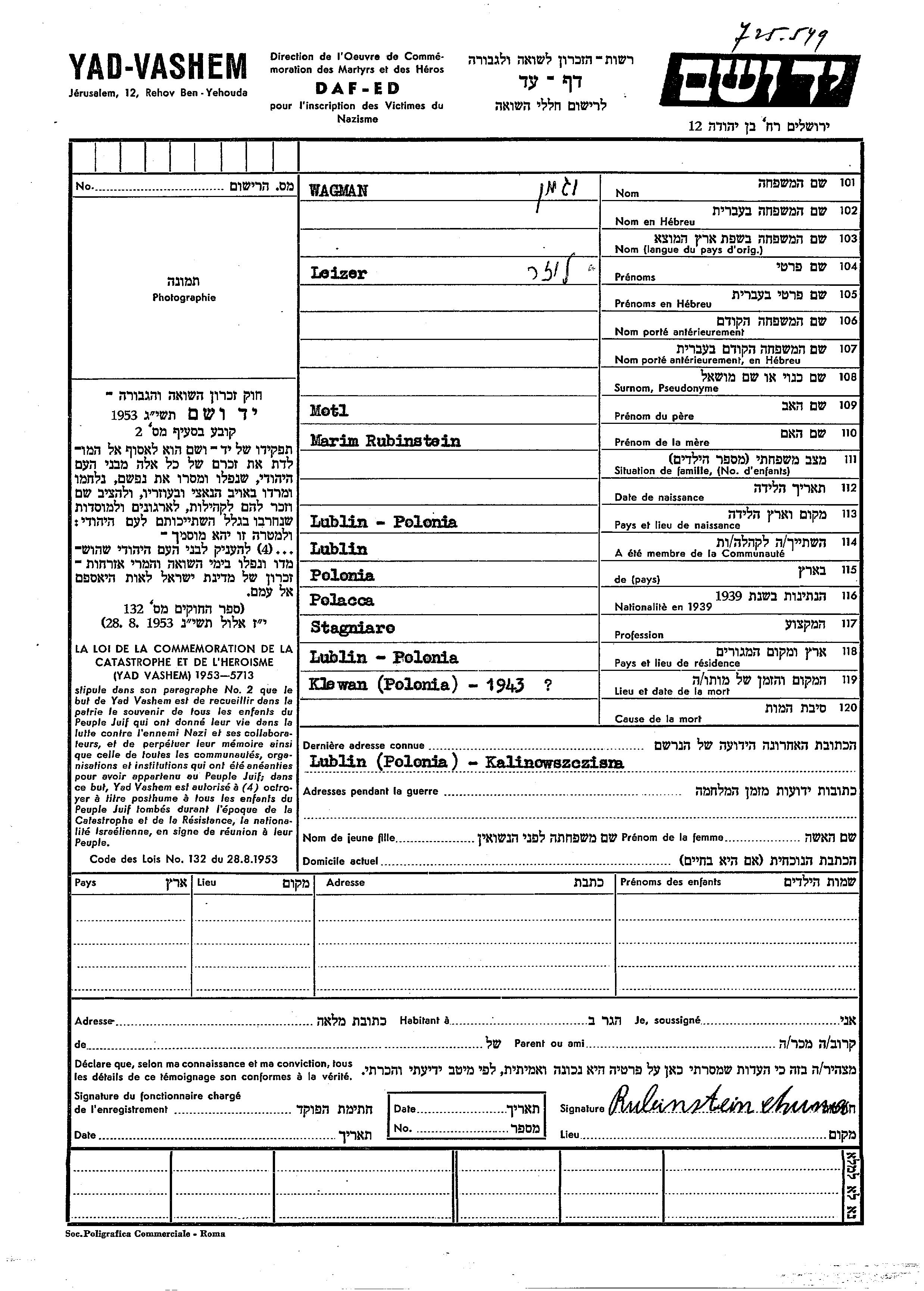 Wagman Eliezer Lublin, Polen Gedenkblatt
