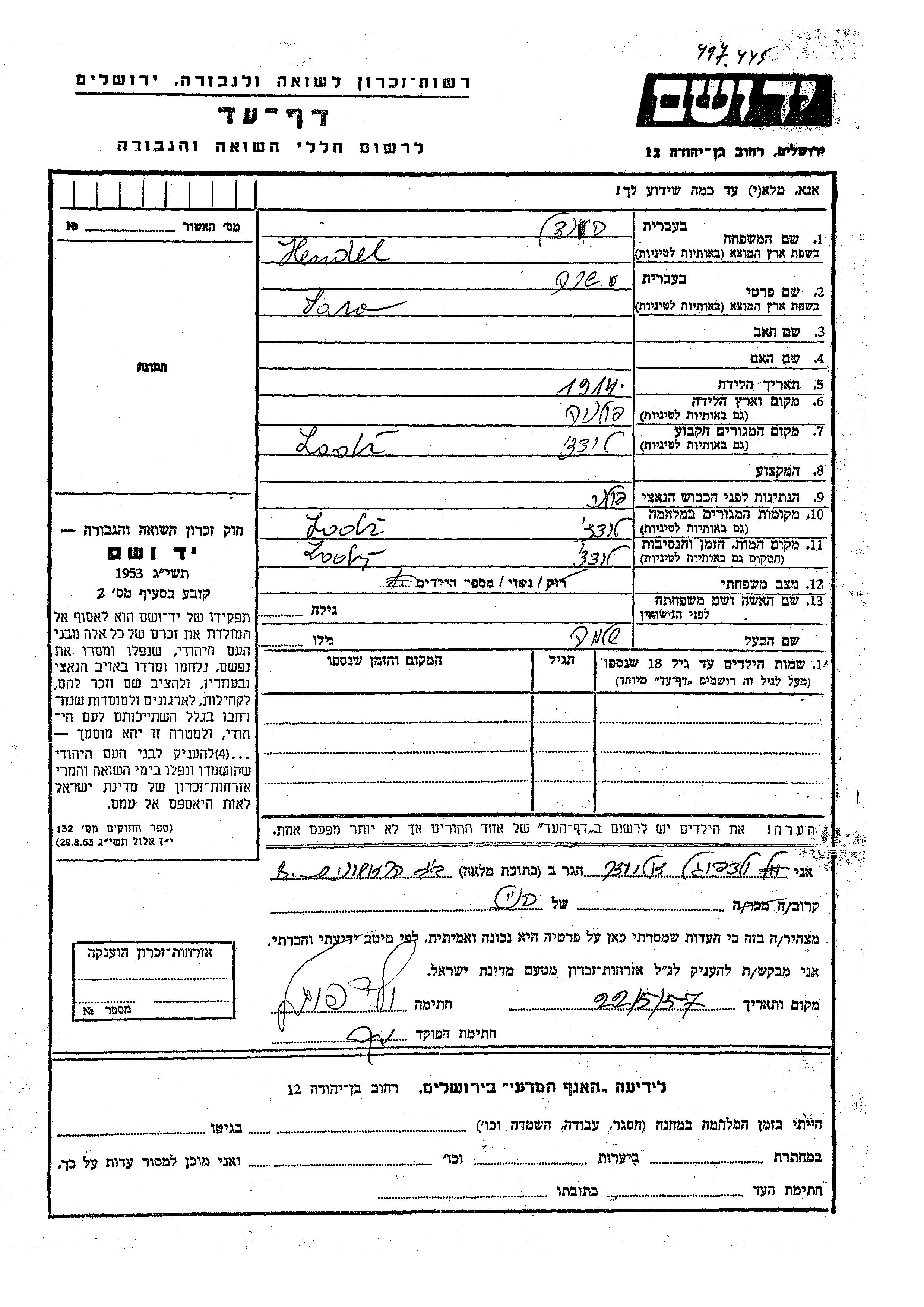 Sara Hendel wurde im Jahr 1914 in Polen geboren. Sie war mit Shlomo Verheiratet. Vor dem Zweiten Weltkrieg lebte sie in Lodz, Polen. Während des Krieges war sie in Lodz, Polen.
