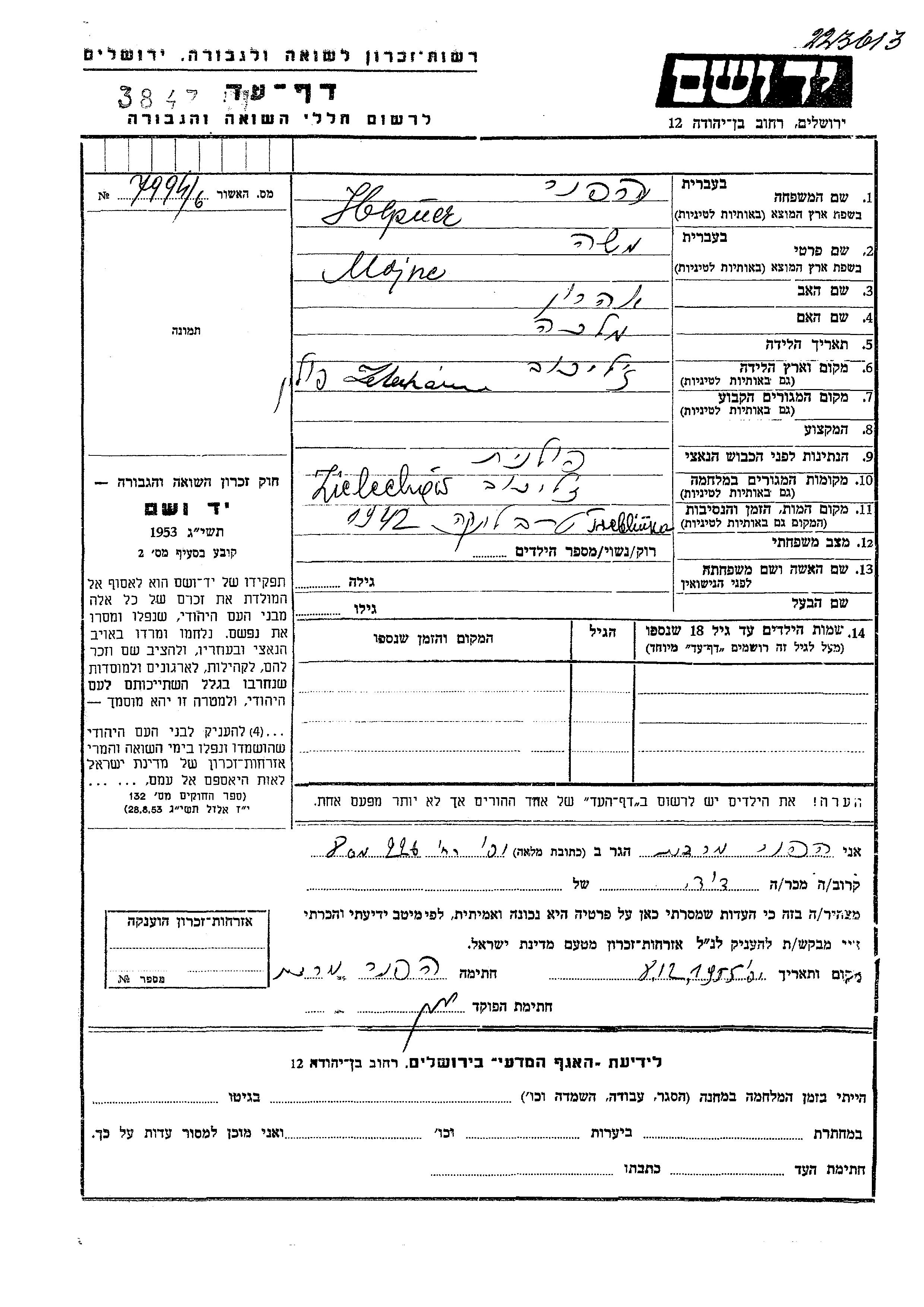 Mojne Moshe wurde in der Schoah ermordet. Todesort: Treblinka, Polen im Jahr 1942.