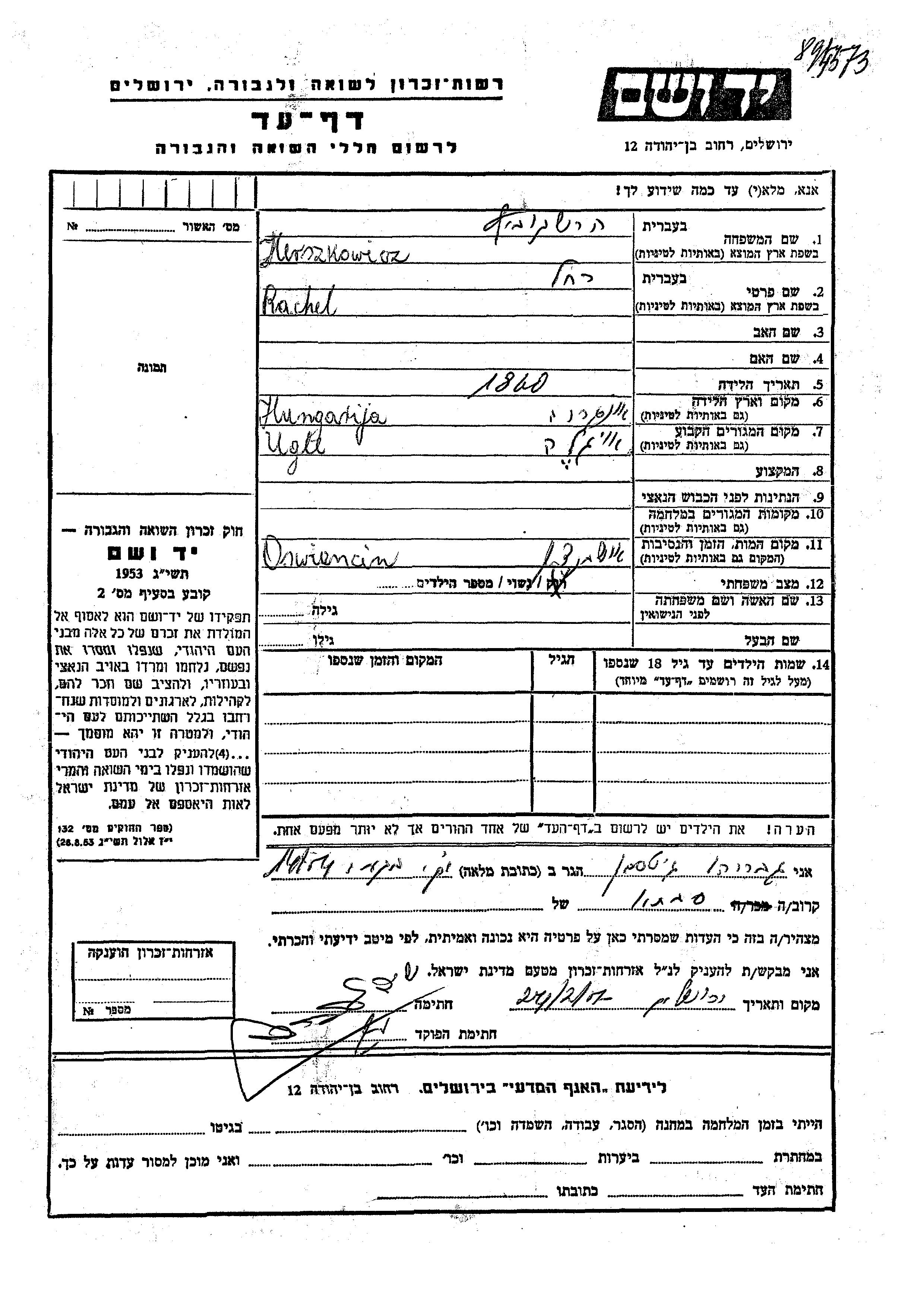 Rachel wurde in der Schoah ermordet. Todesort: Auschwitz, Polen.