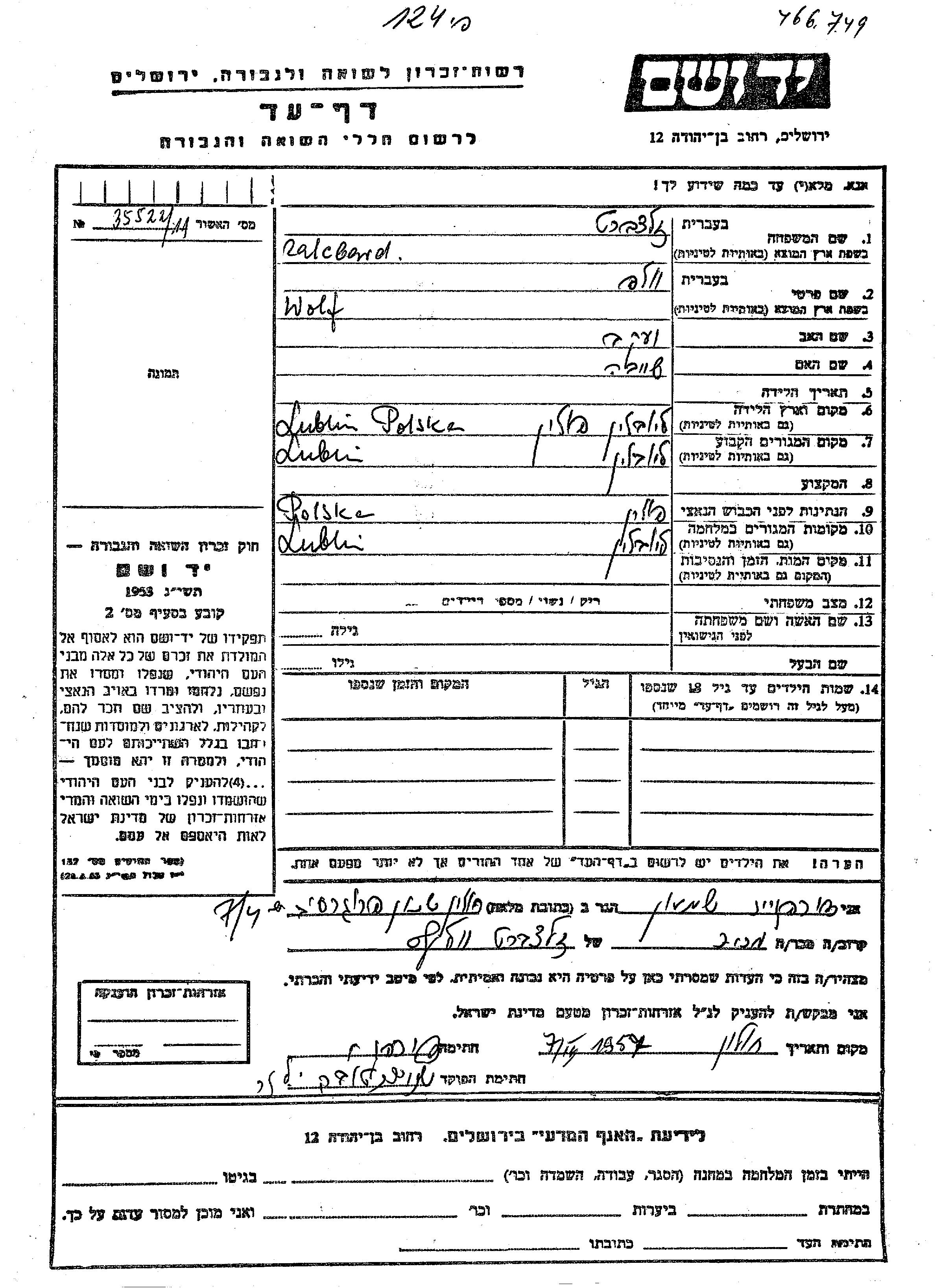 Wolf Zaltzbart wurde in Lublin, Polen geboren. Er war der Sohn von Yaakov und Sheiva. Vor dem Zweiten Weltkrieg lebte er in Lublin, Polen. Während des Krieges war er in Lublin, Polen.
