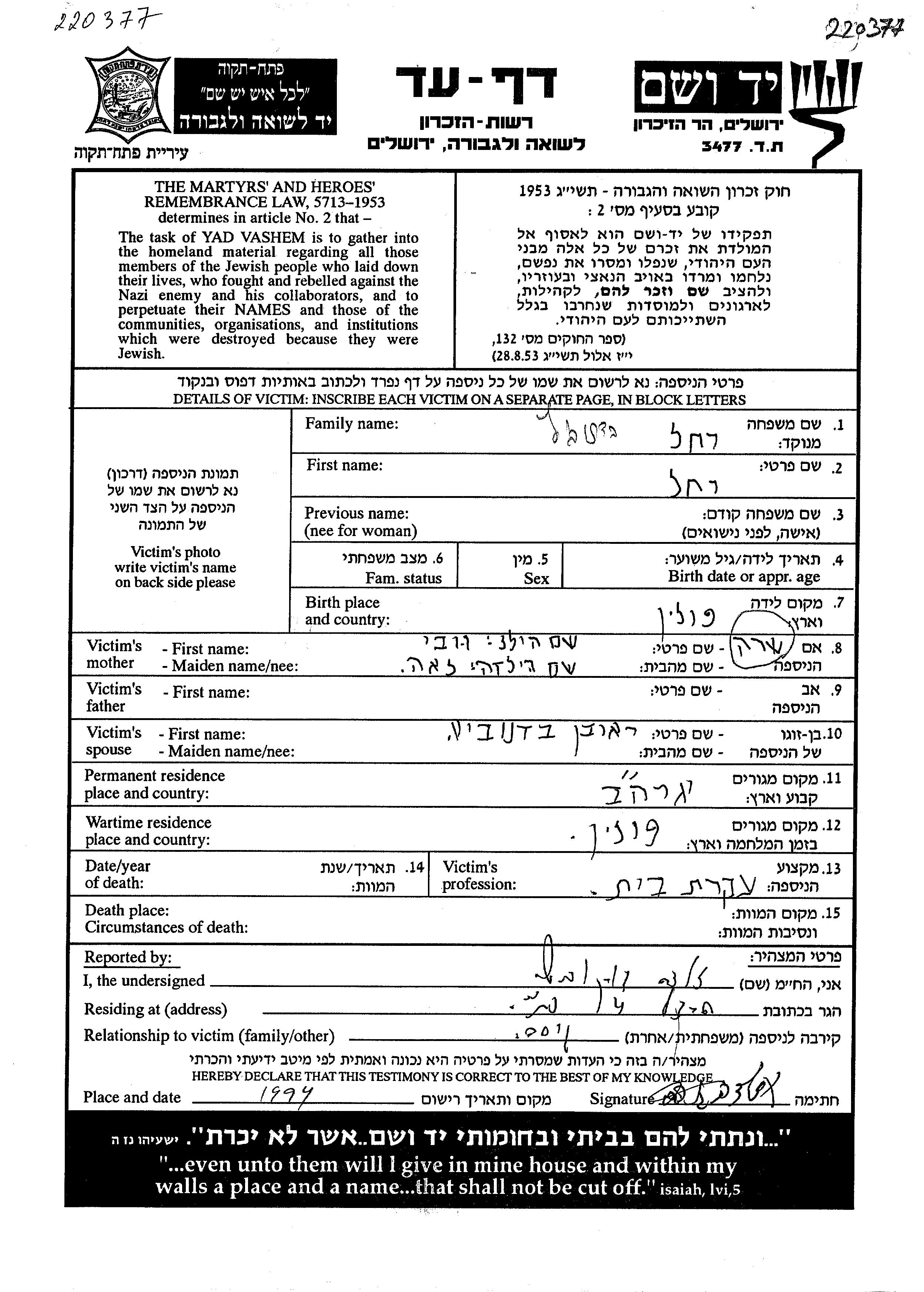 Yad Vashem - Gedenkblätter Sammlung