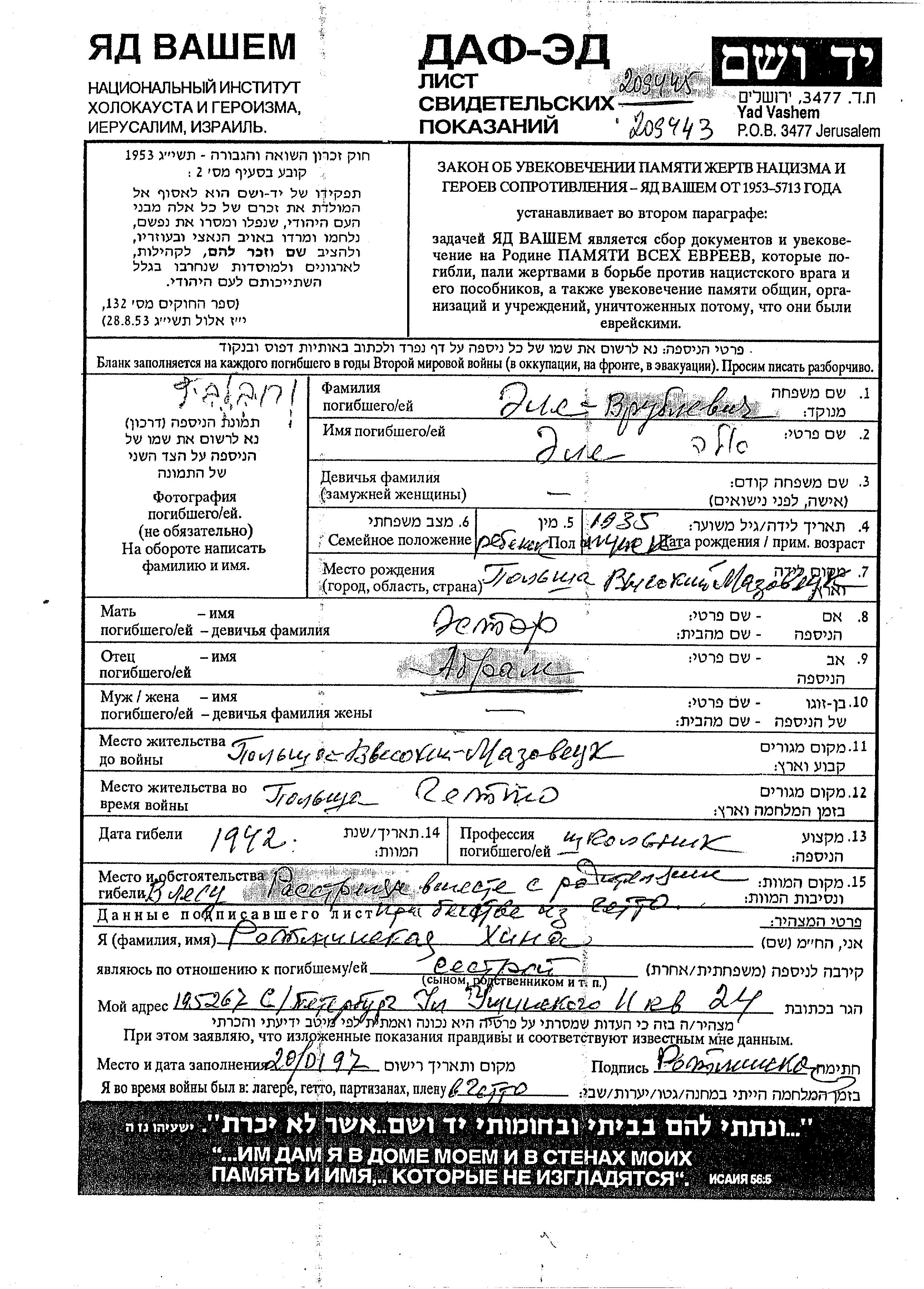 Abram Vrublevich. Er war mit Ester Verheiratet. Während des Krieges war er in Polen.