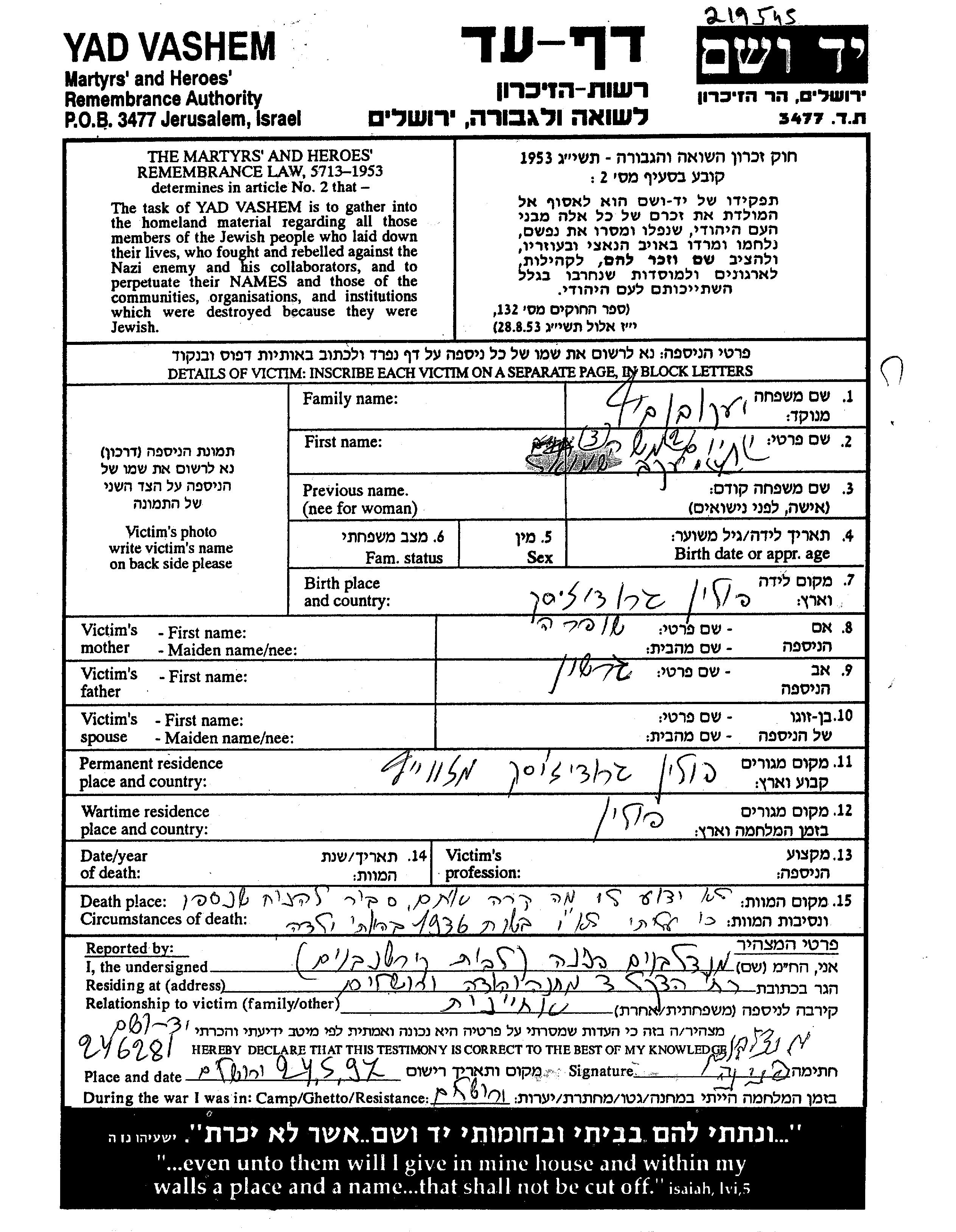 Yakubovich Shmuel Grodzisk Mazowiecki, Polen Gedenkblatt