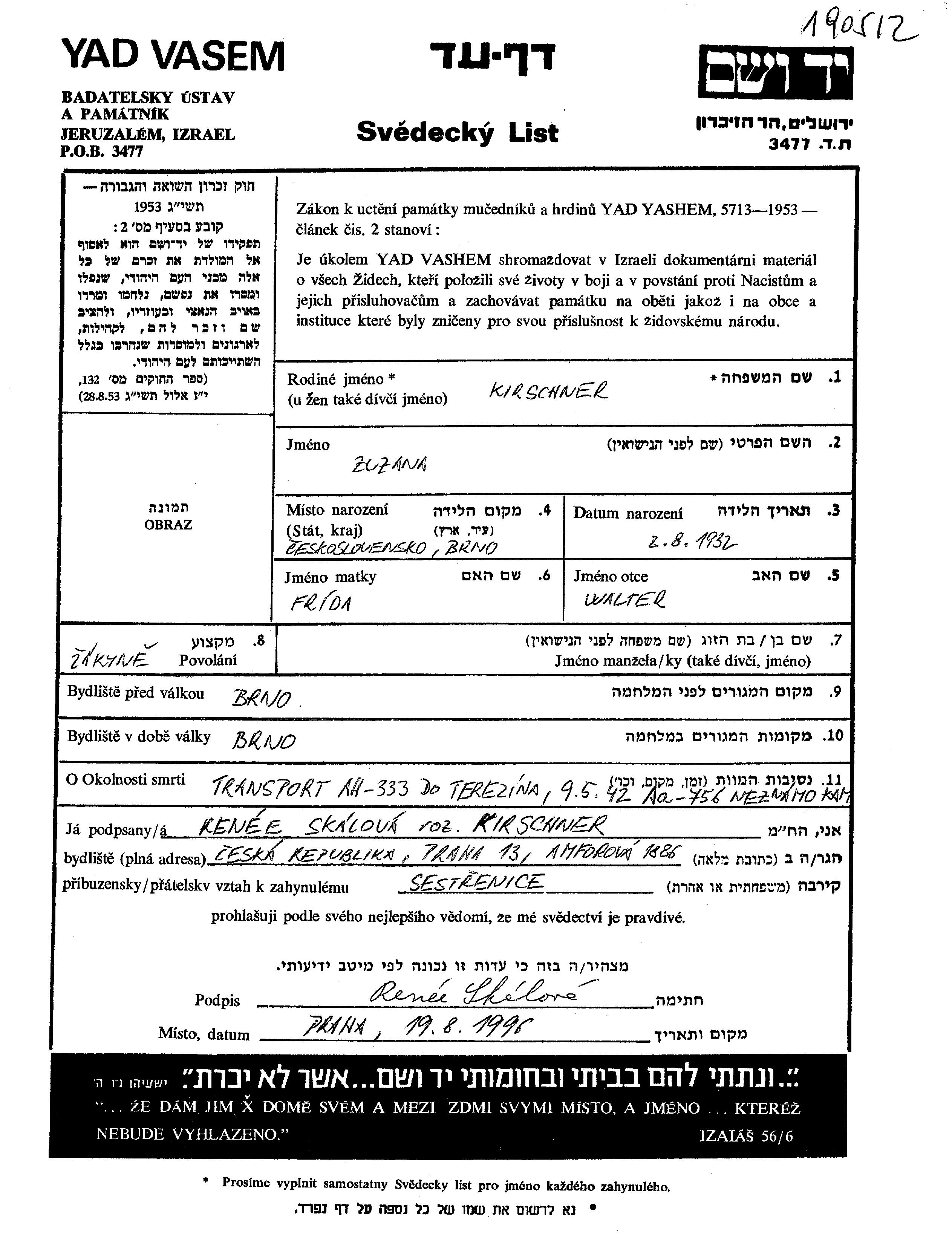 Kirschner Zuzana 1932 Brno, Tschechoslowakei Gedenkblatt