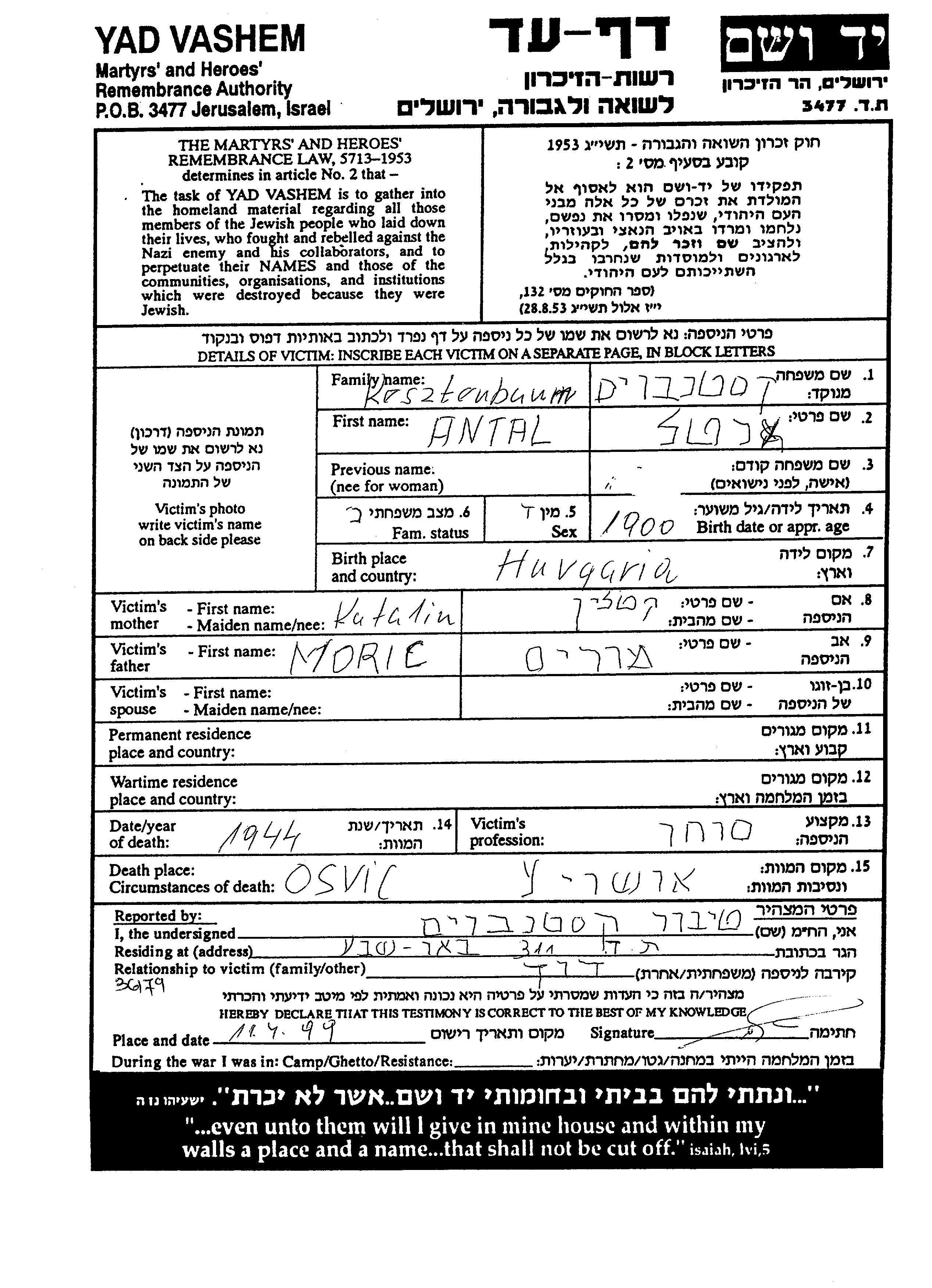 Kesztenbaum Antal Liste von ermordeten Juden aus Ungarn