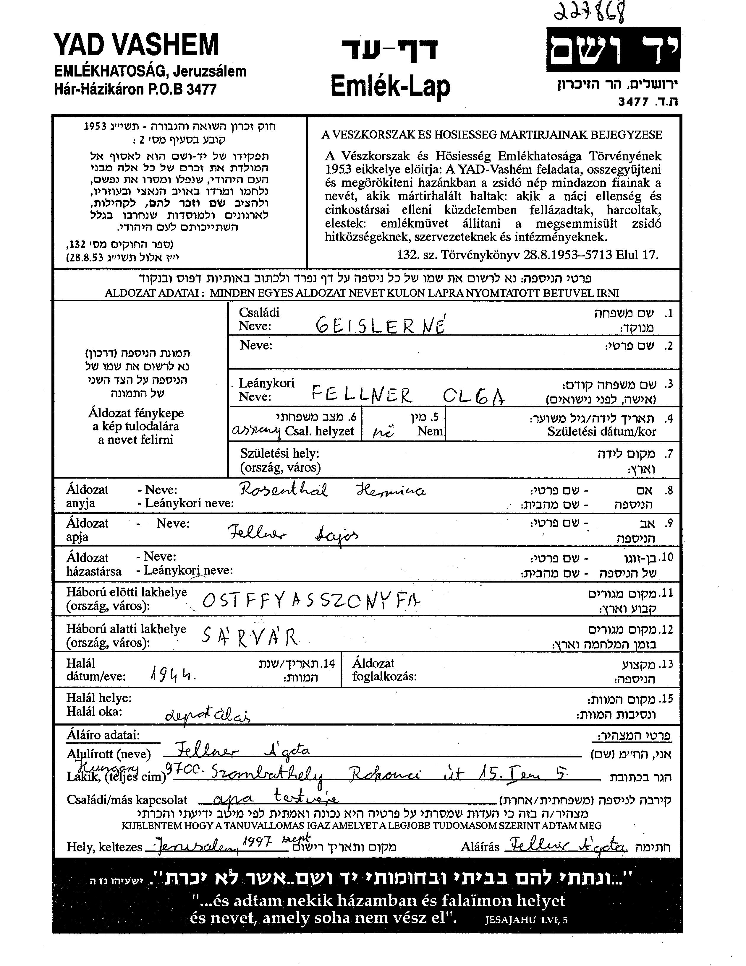 Geiszler Olga 1899 Ostffyassznyfa, Ungarn Liste von ermordeten Personen