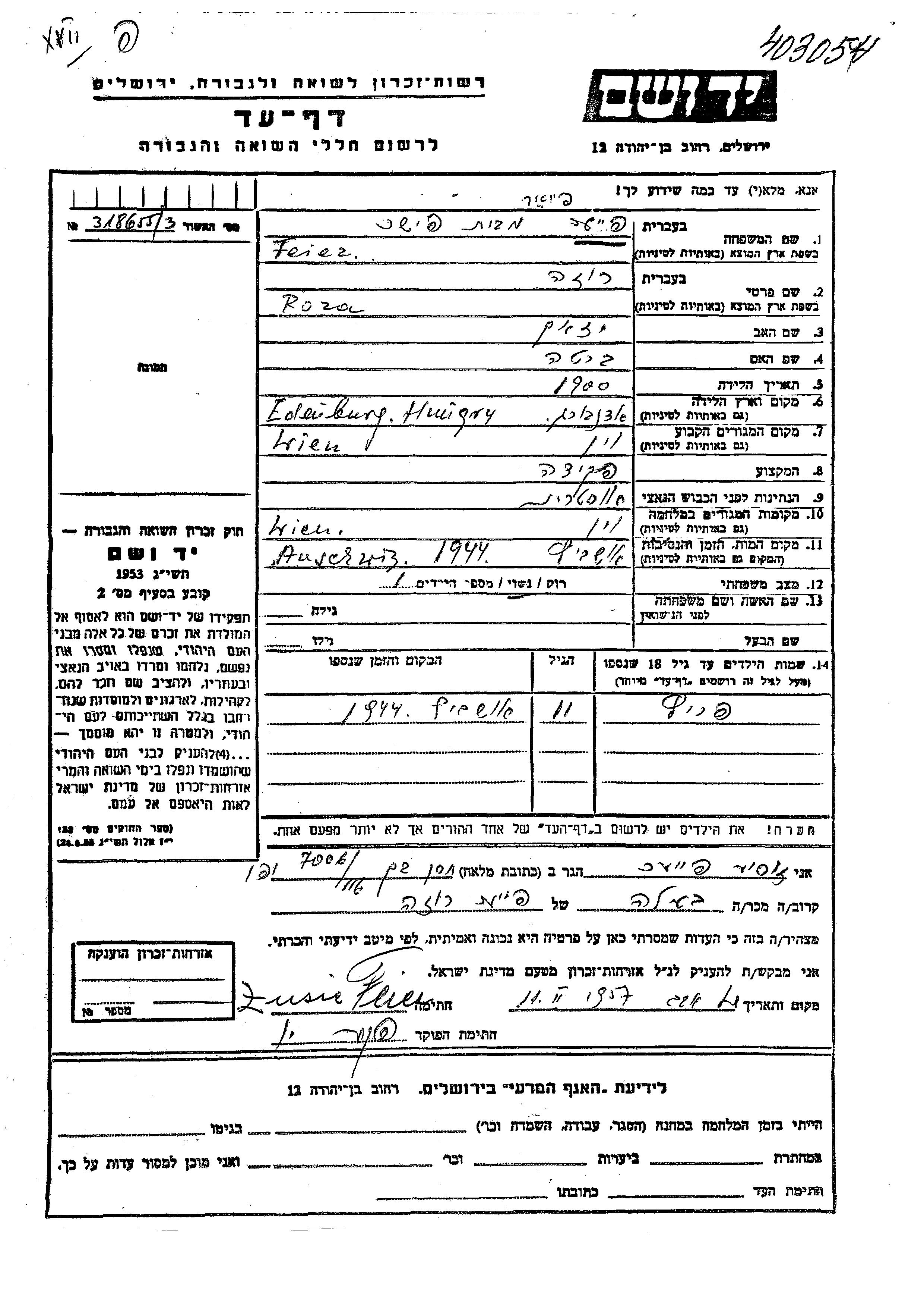 Fritz Yisrael Feuer wurde in unbekannter Ort geboren. Vor dem Zweiten Weltkrieg lebte er in Wien, Österreich.