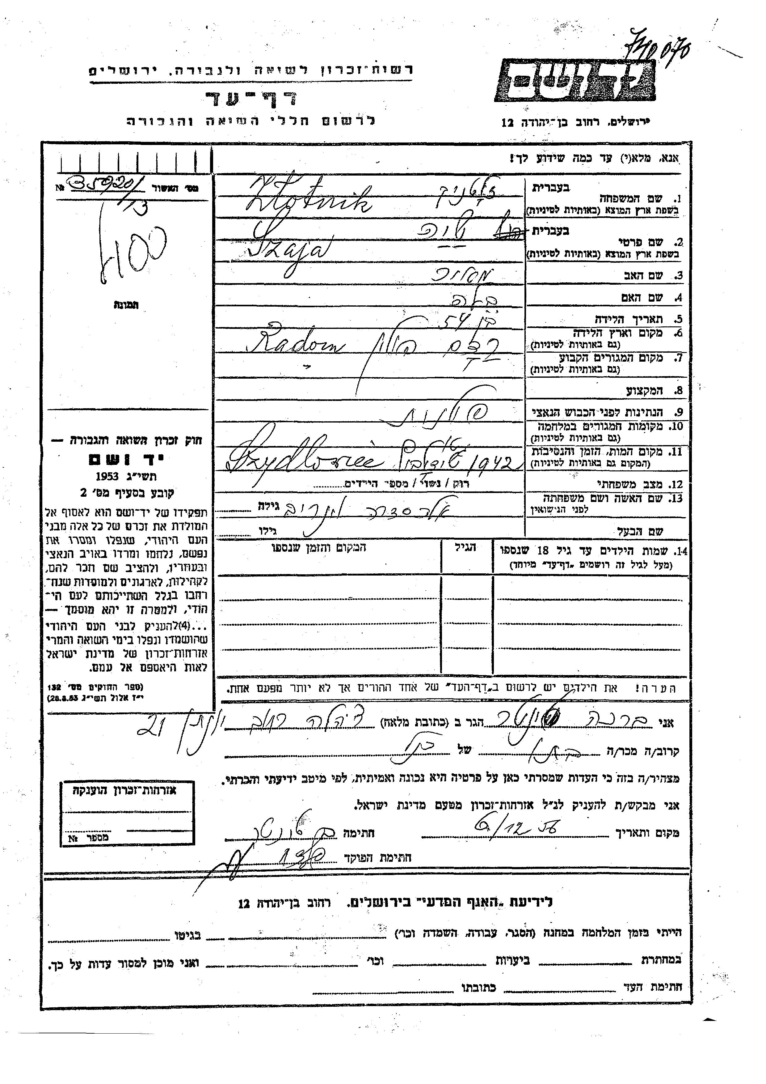 Szaja Zlotnik wurde im Jahr 1893 in Glowaczow, Polen geboren. Vor dem Zweiten Weltkrieg lebte er in Radom, Polen.