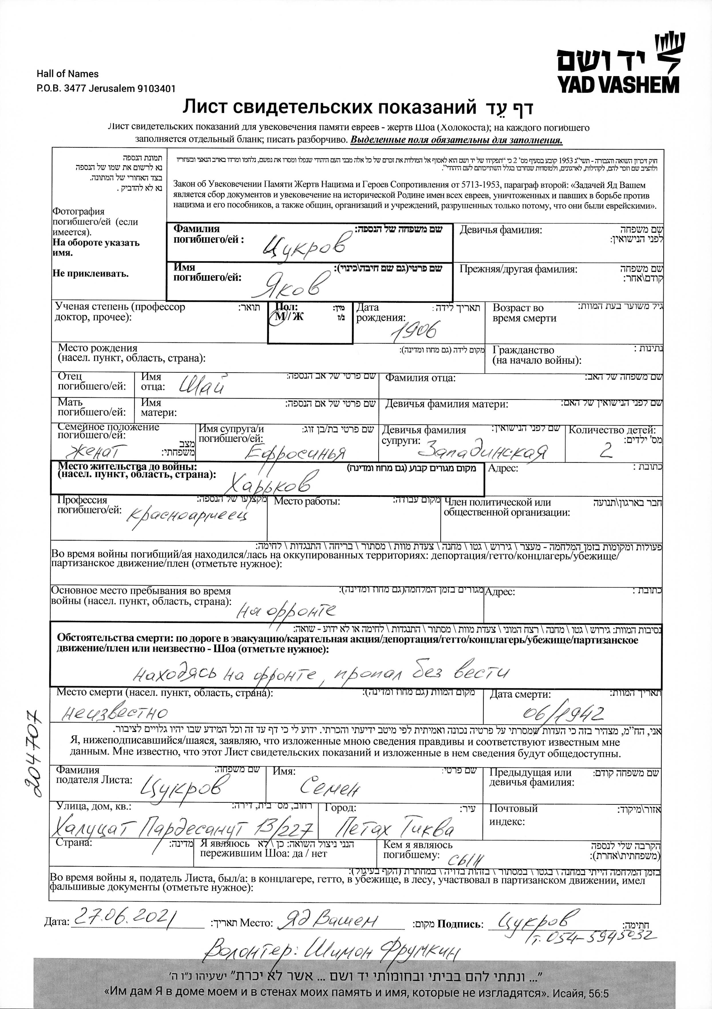 Yakov wurde in der Schoah ermordet. Todesort: Sowjetunion im Jahr 06/1942.