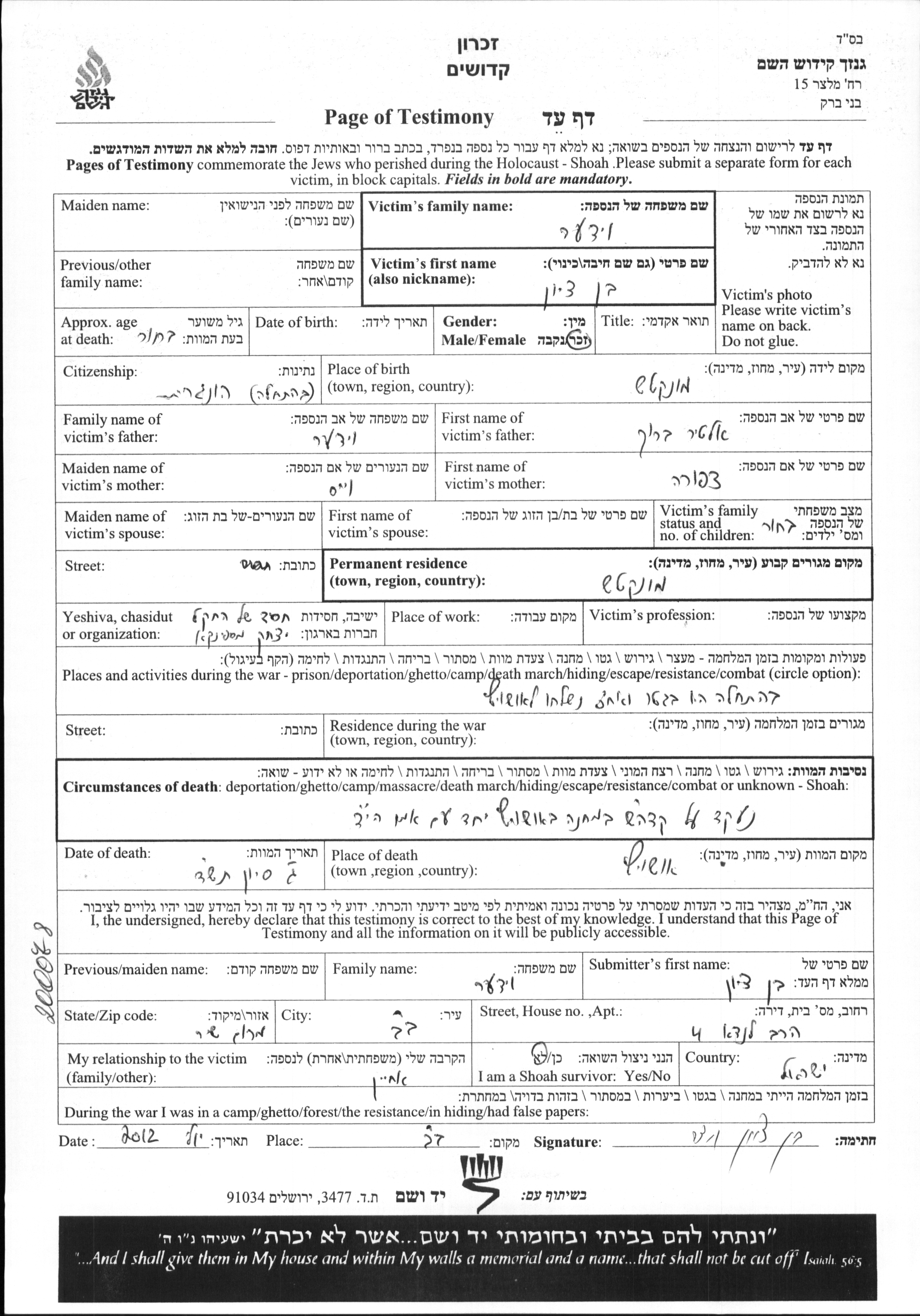 Vider Bentzion Aufzeichnungen ueber ermordete Personen