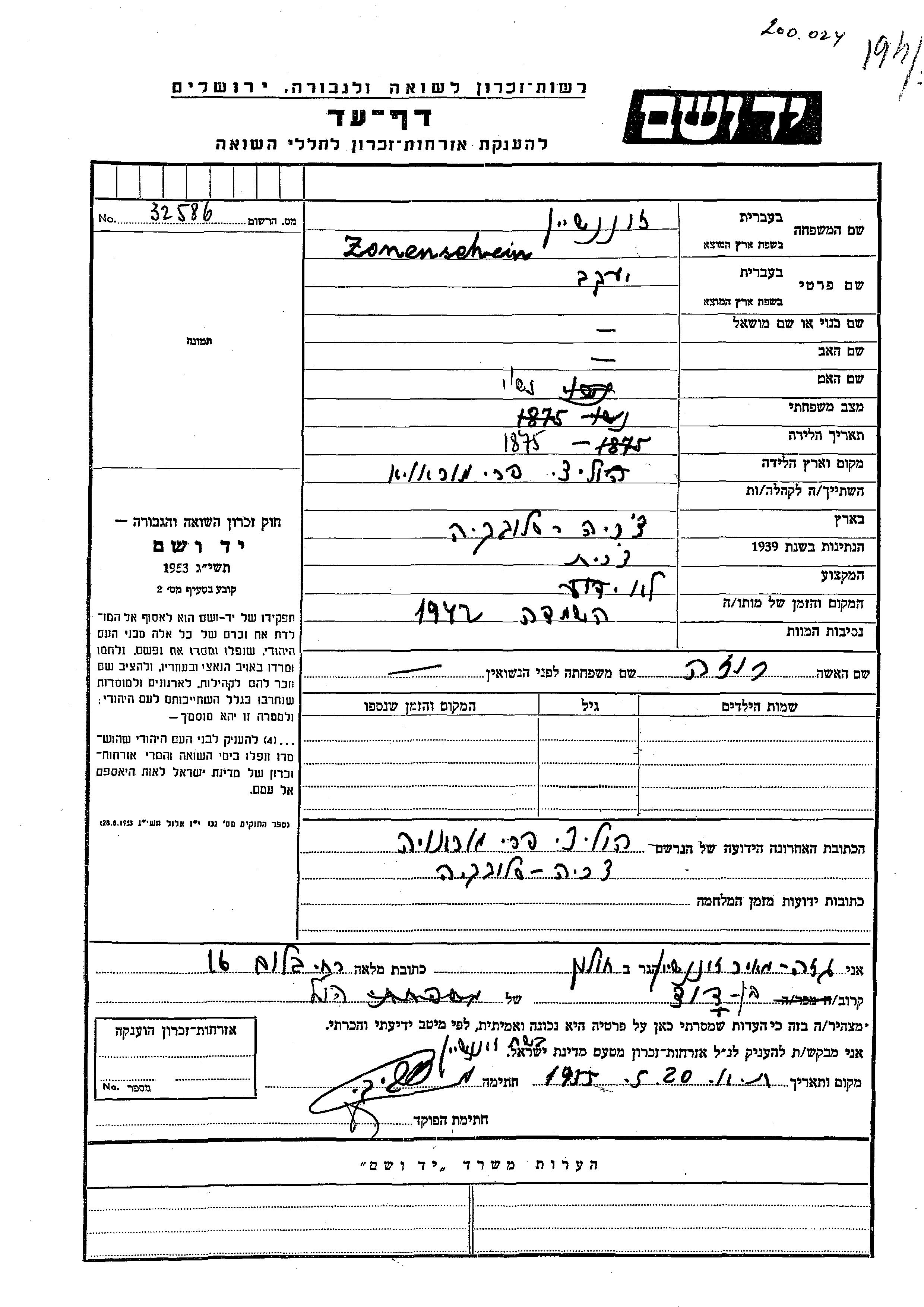 Yaakov Zonenschein wurde im Jahr 1875 in Holice, Tschechoslowakei geboren. Während des Krieges war er in Holice, Tschechoslowakei.