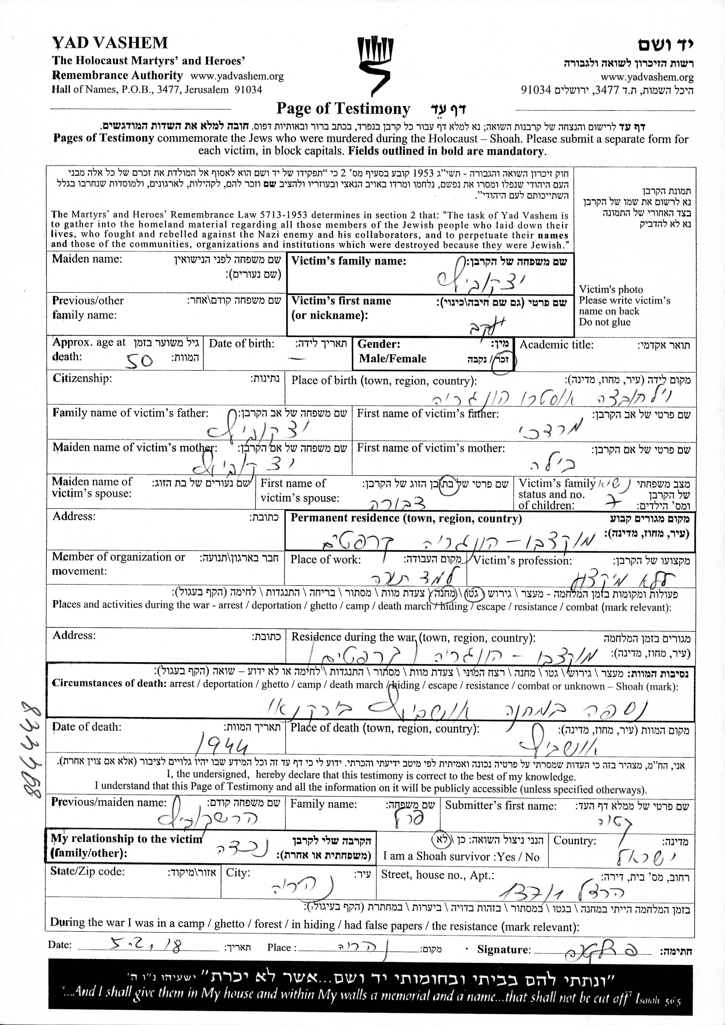 Yaakov wurde in der Schoah ermordet. Todesort: Auschwitz, Polen im Jahr 1944.