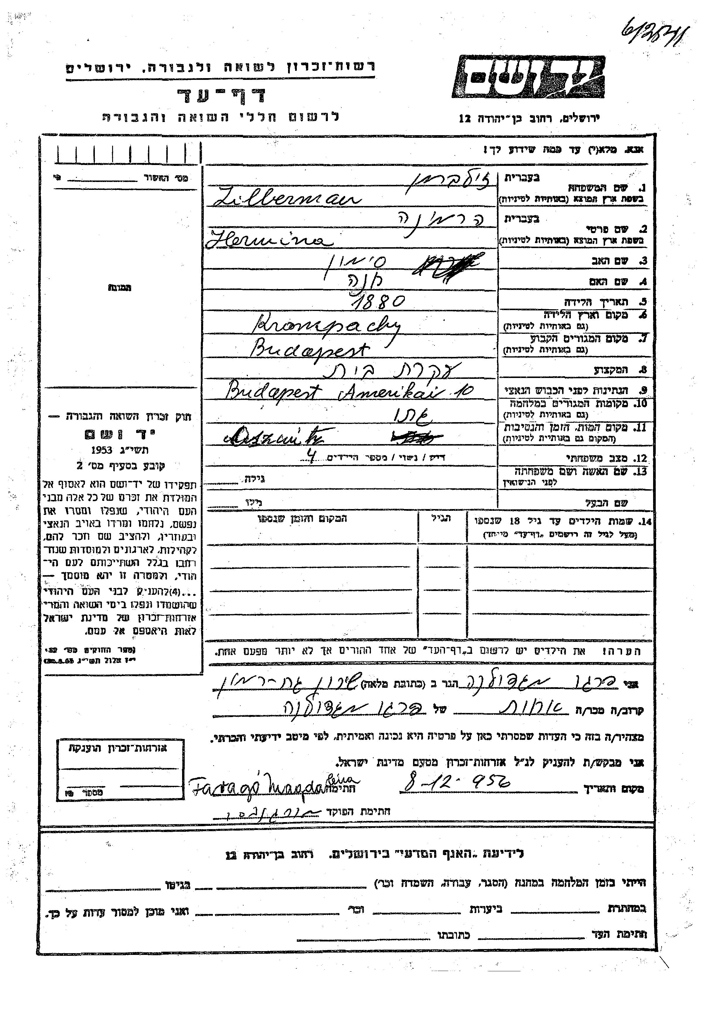 Hermina wurde in der Schoah ermordet. Todesort: Auschwitz, Polen.