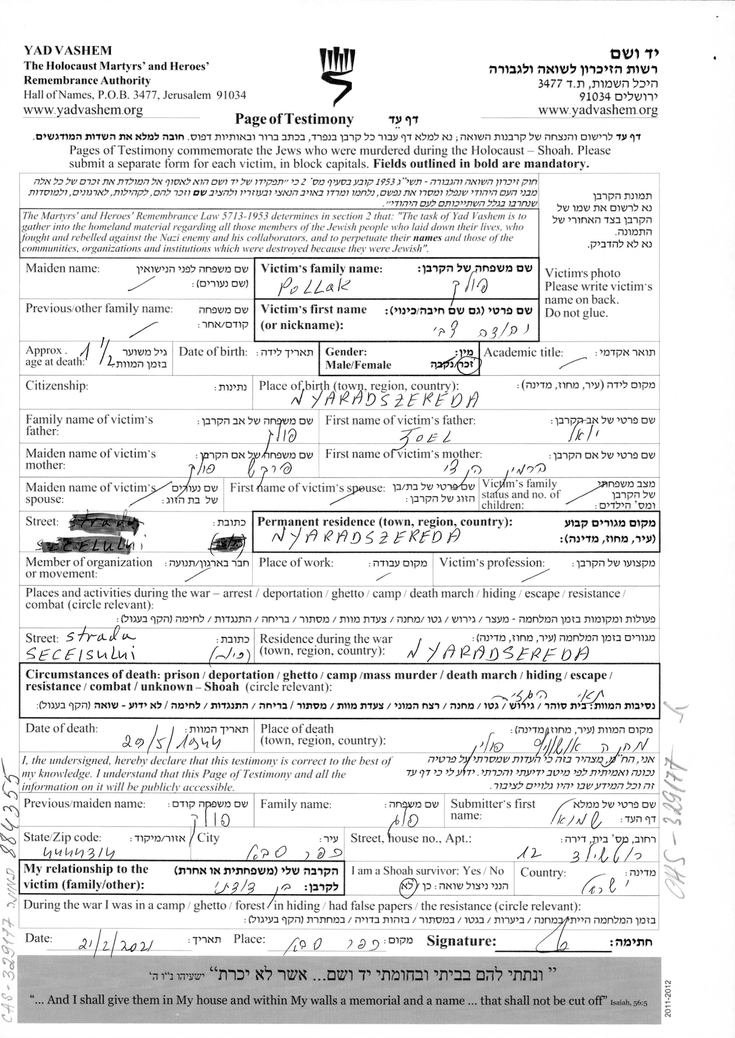 Polak | Yehuda Khaim Hersh | Nyaradszereda, Rumänien | Gedenkblatt | |