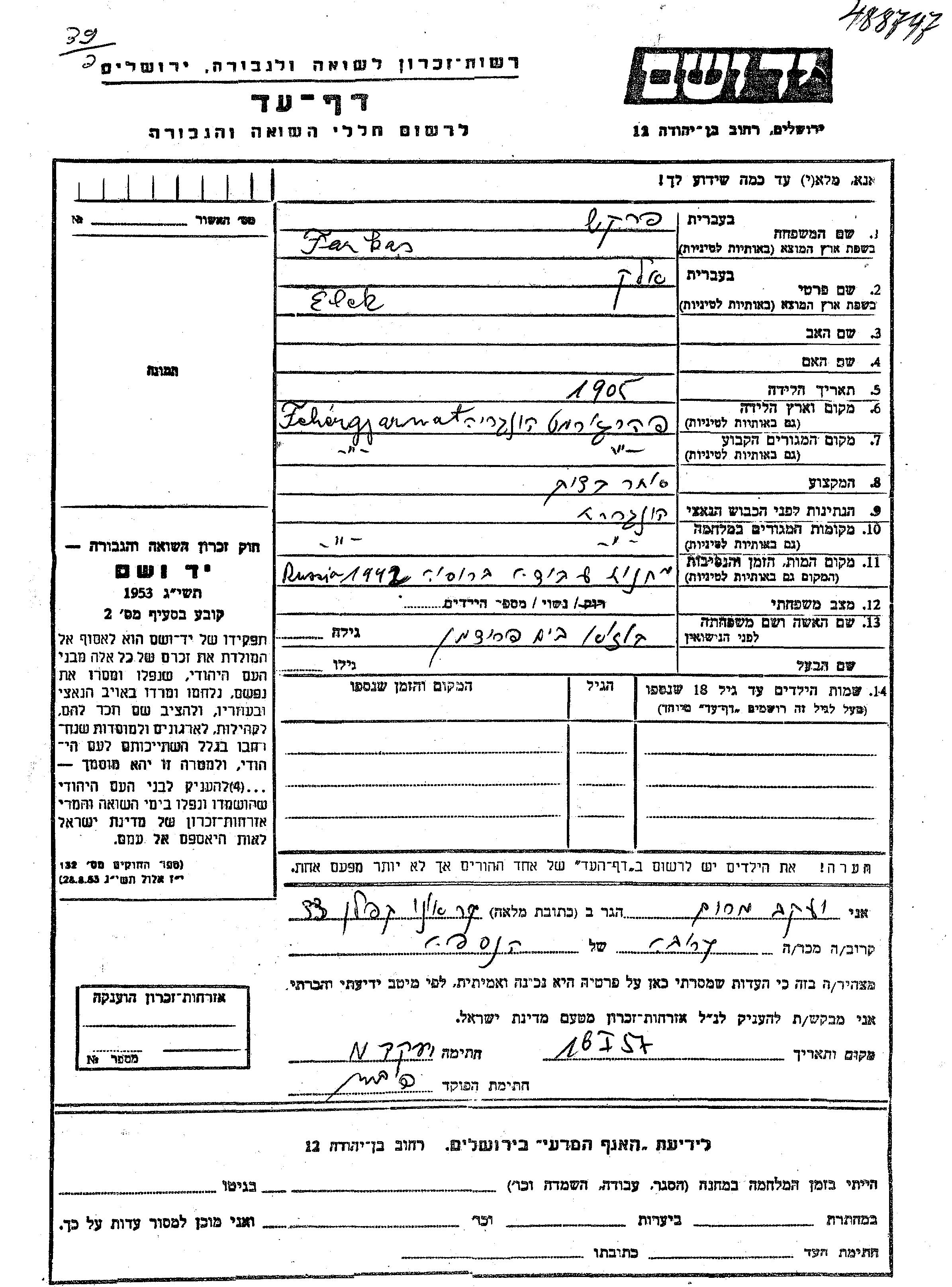 Alek Farkash wurde im Jahr 1905 in Feher-Gyarmat, Ungarn geboren. Er war Kaufmann/-frau. Vor dem Zweiten Weltkrieg lebte er in Feher-Gyarmat, Ungarn.