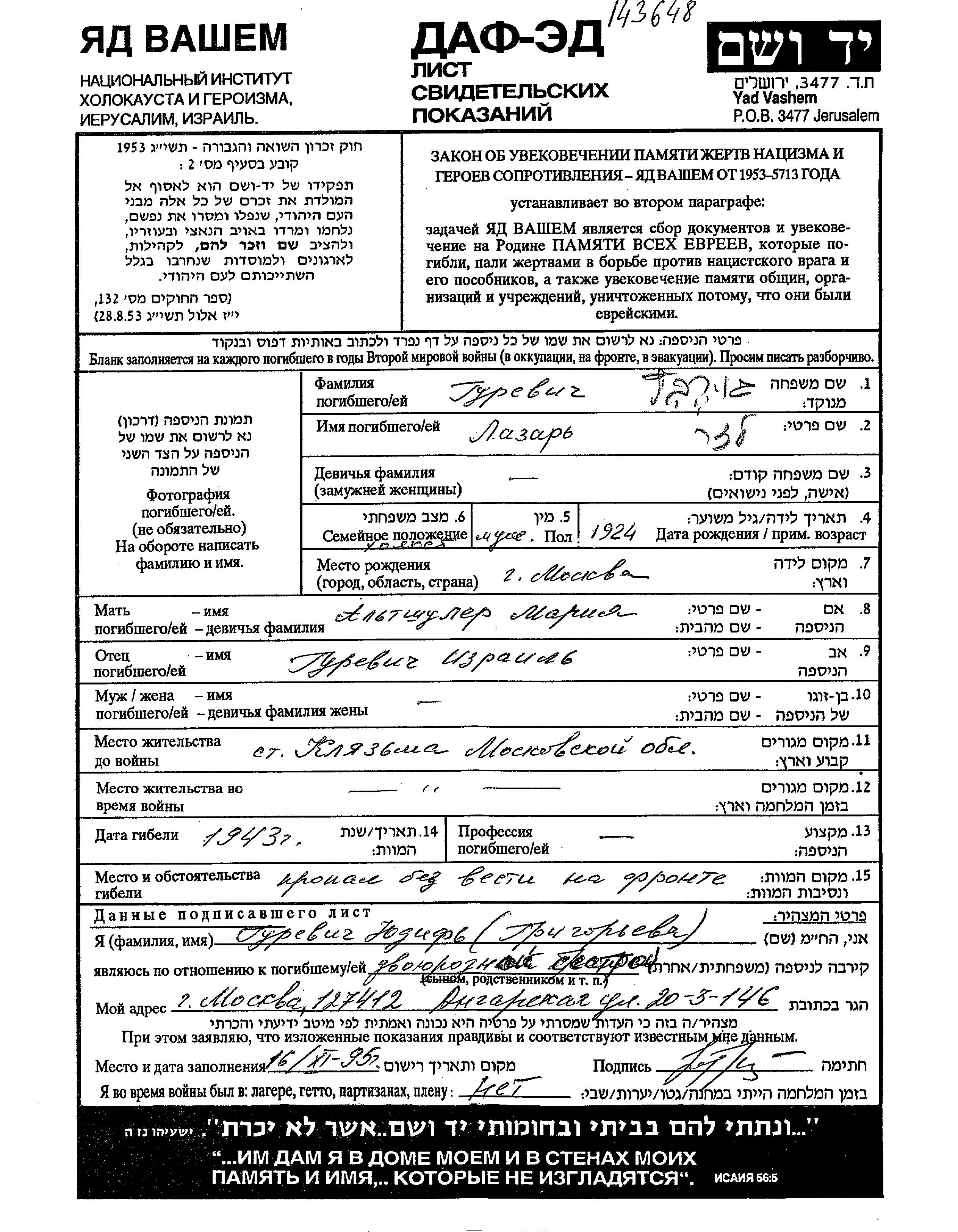 Gurevich Lazar 1924 Klyazma, Russland (UdSSR) Gedenkblatt