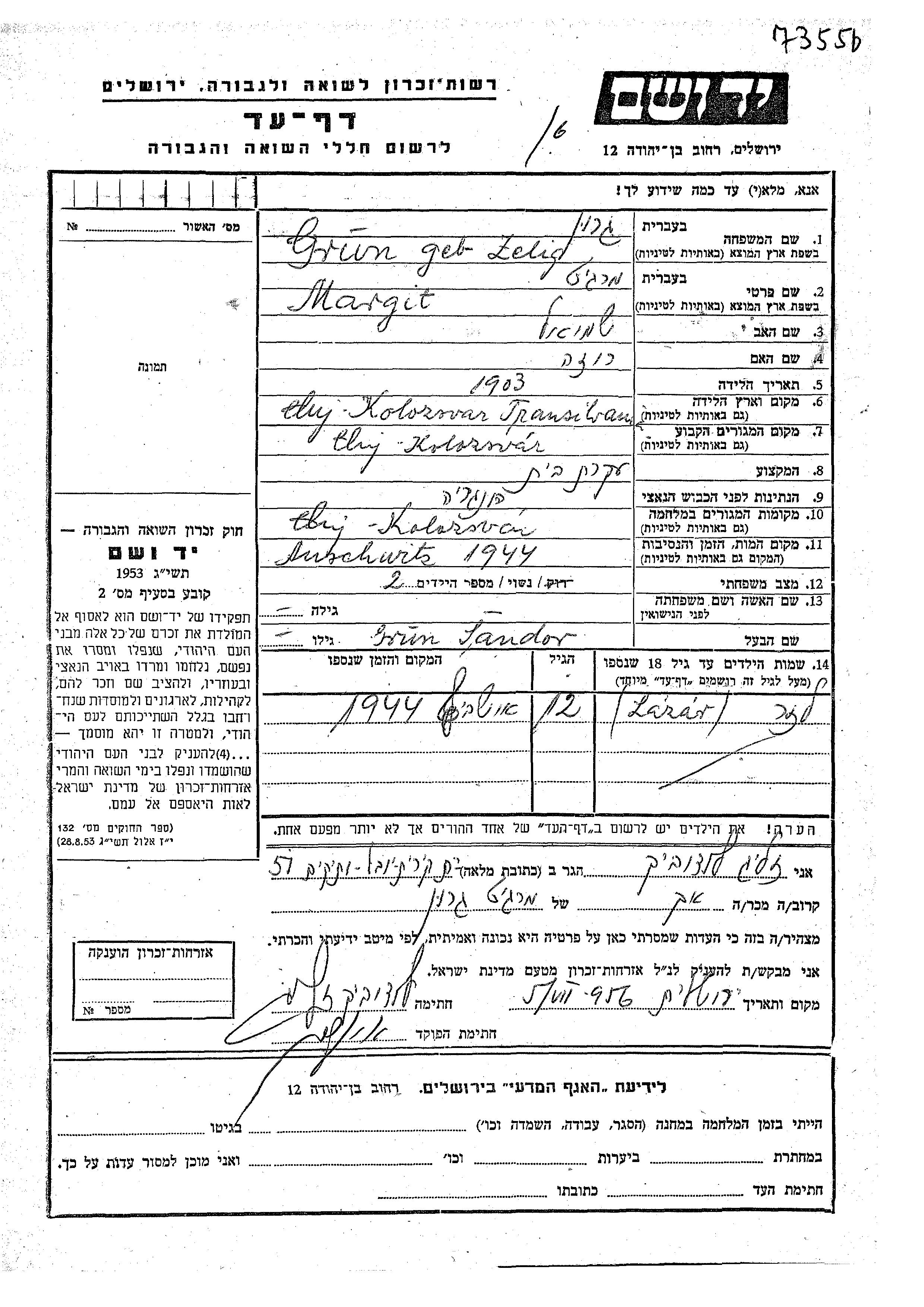 Grun Eliezer 1934 Kolozhvar, Rumänien Gedenkblatt