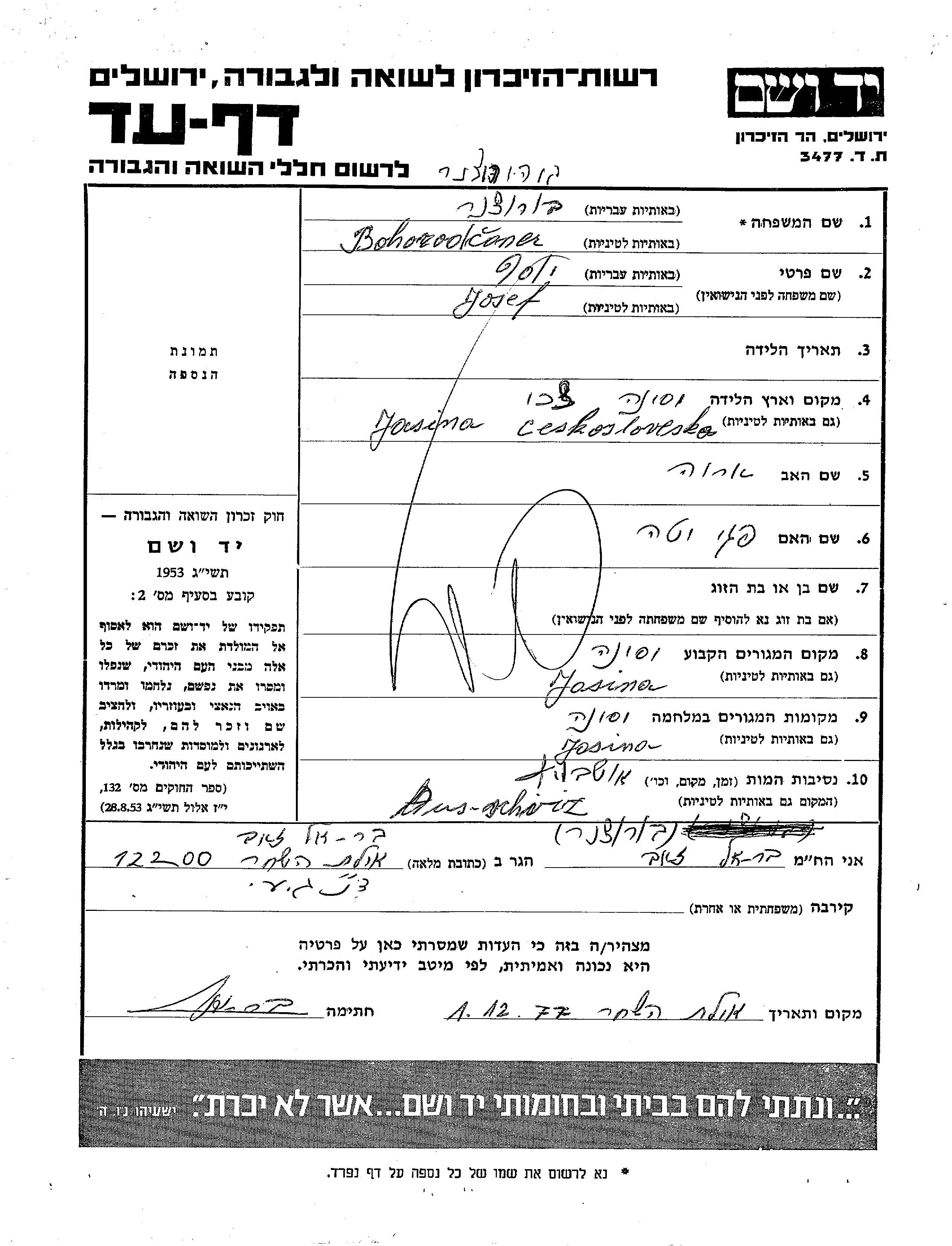 Josef Bohorčaner Borochaner wurde im Jahr 1874 in Jasina, Tschechoslowakei geboren. Vor dem Zweiten Weltkrieg lebte er in Jasina, Tschechoslowakei.