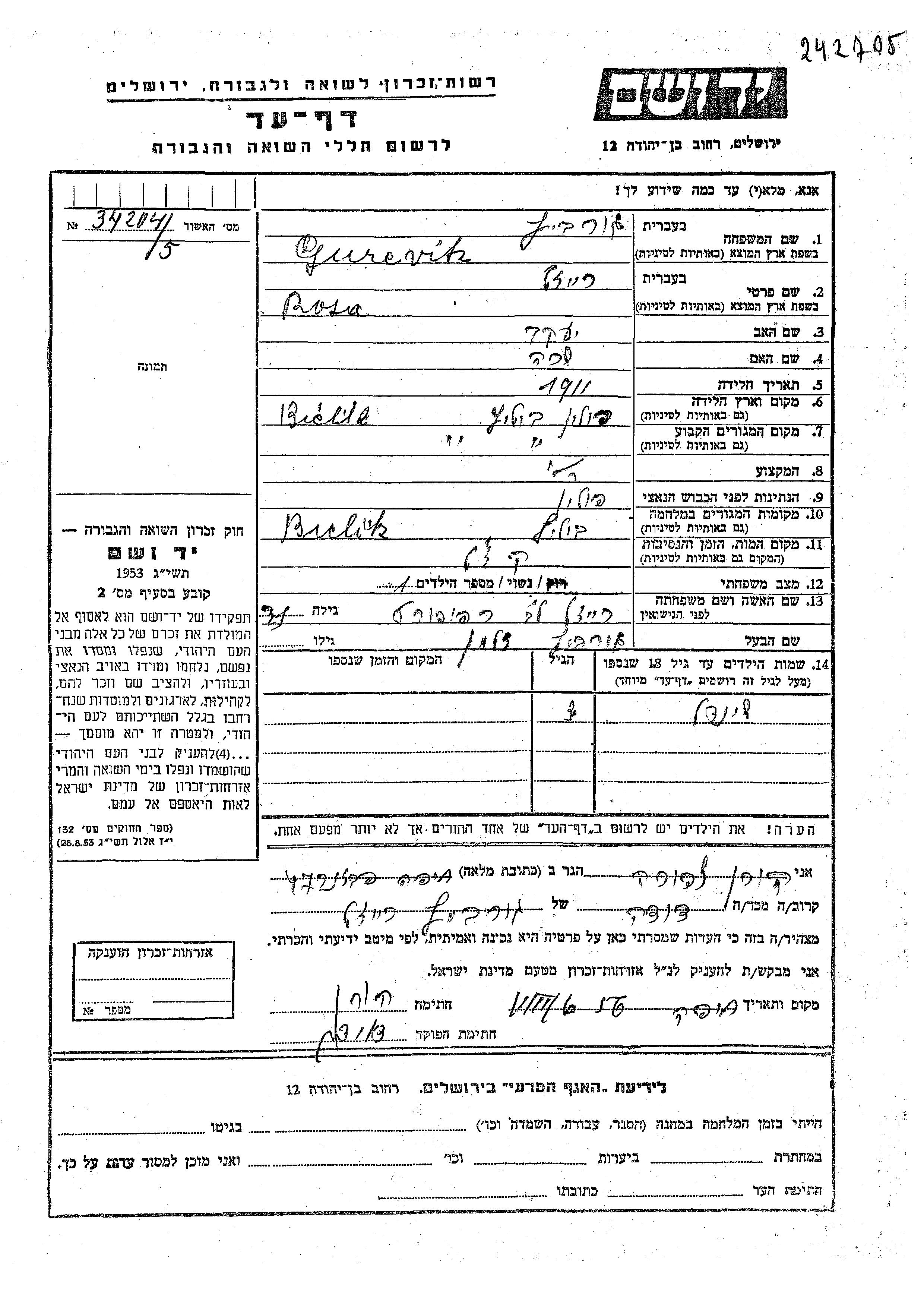Sheindl Gurevitz. Vor dem Zweiten Weltkrieg lebte sie in Bielitz, Polen.