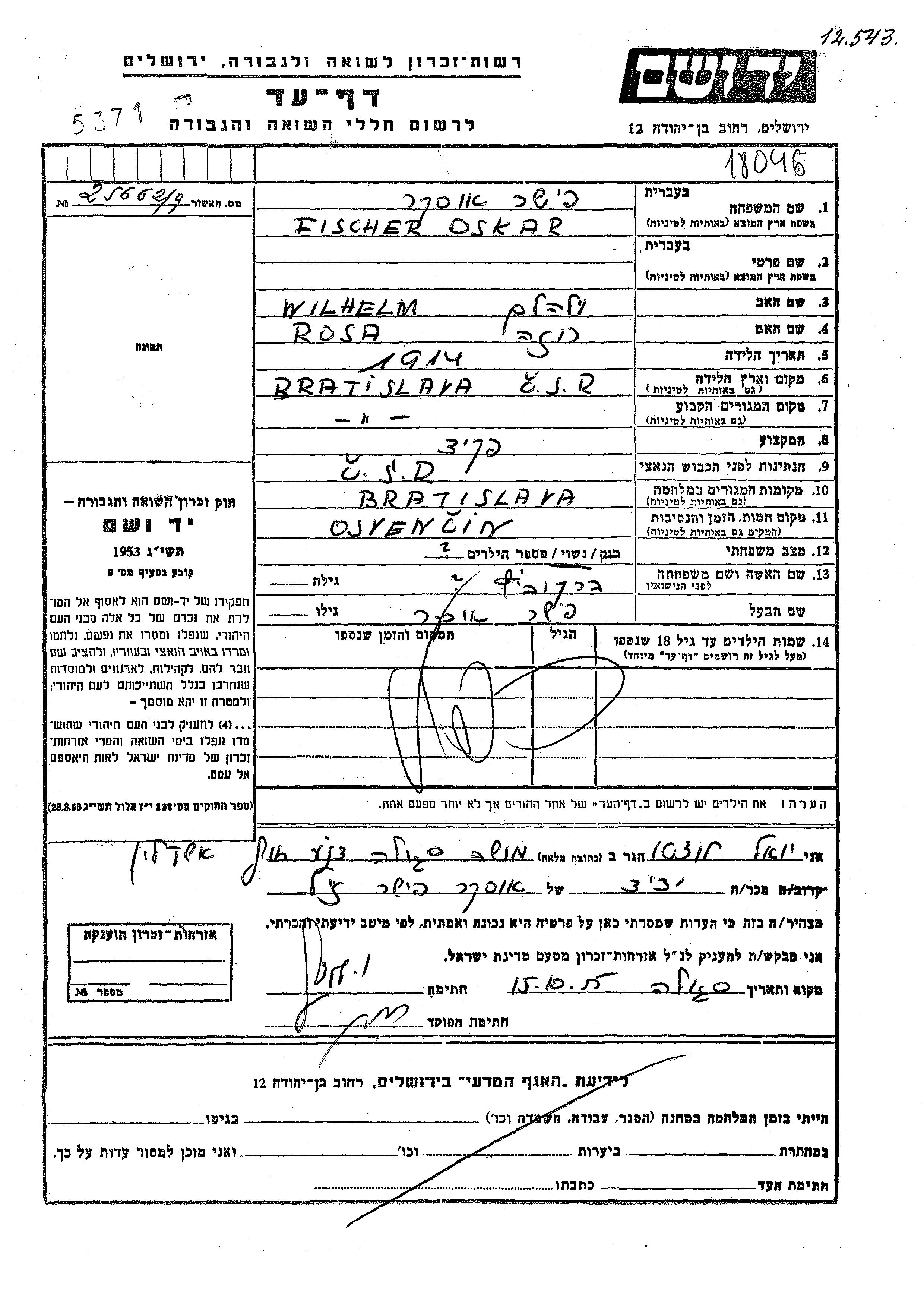 Oscar Fischer wurde im Jahr 1914 in Bratislava, Tschechoslowakei geboren. Er war Angestellte/-r. Vor dem Zweiten Weltkrieg lebte er in Bratislava, Tschechoslowakei.