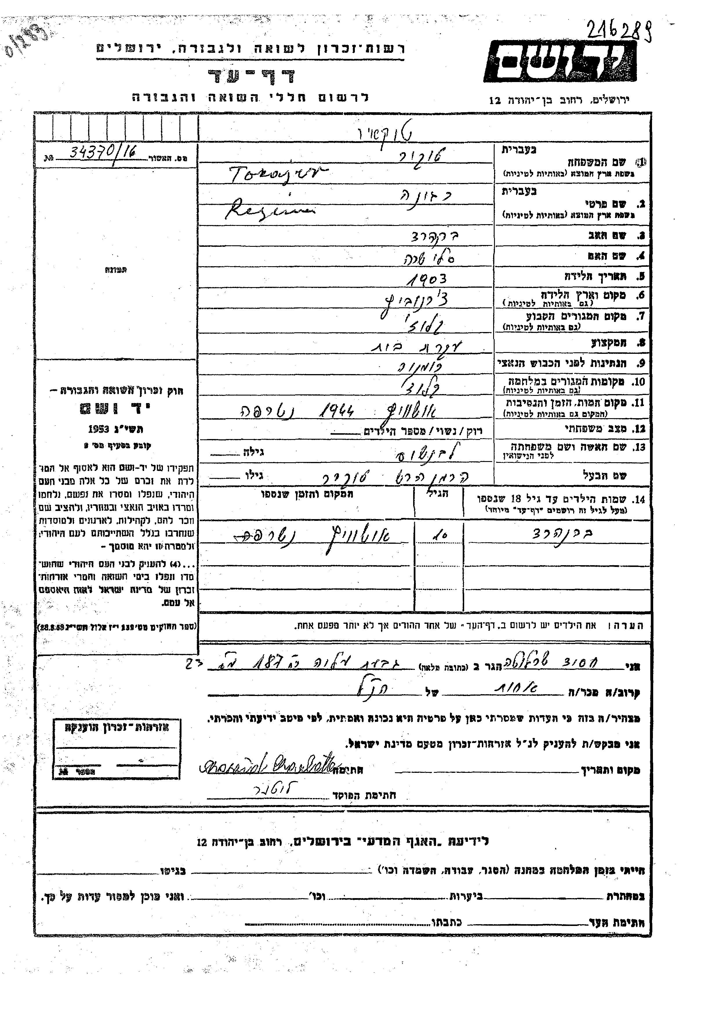 Ständiger Wohnsitz vor dem Krieg: Stadt/Ortschaft oder Bezirk/Region oder Land