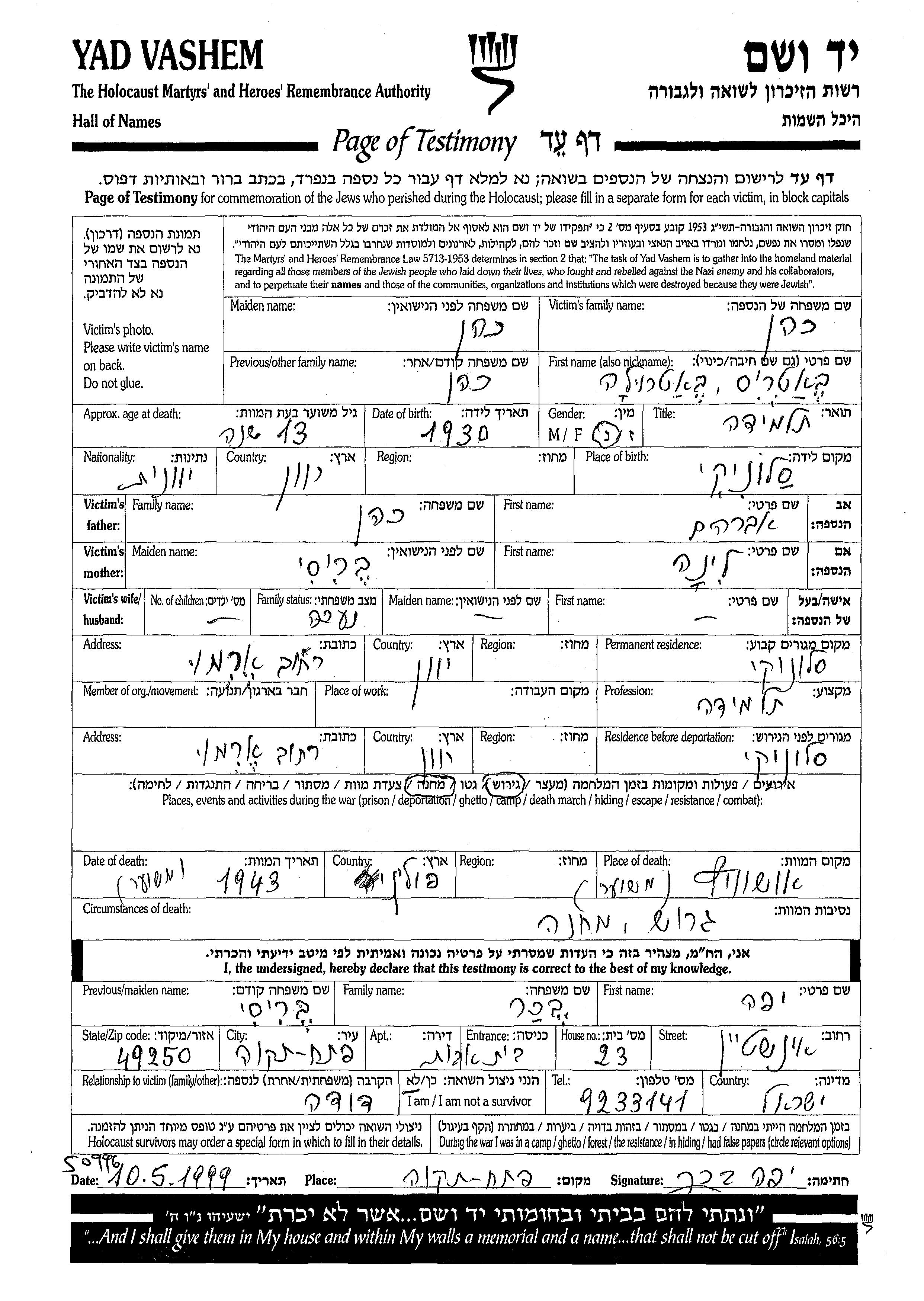 Beatris wurde in der Schoah ermordet. Todesort: Auschwitz, Polen im Jahr 1943.