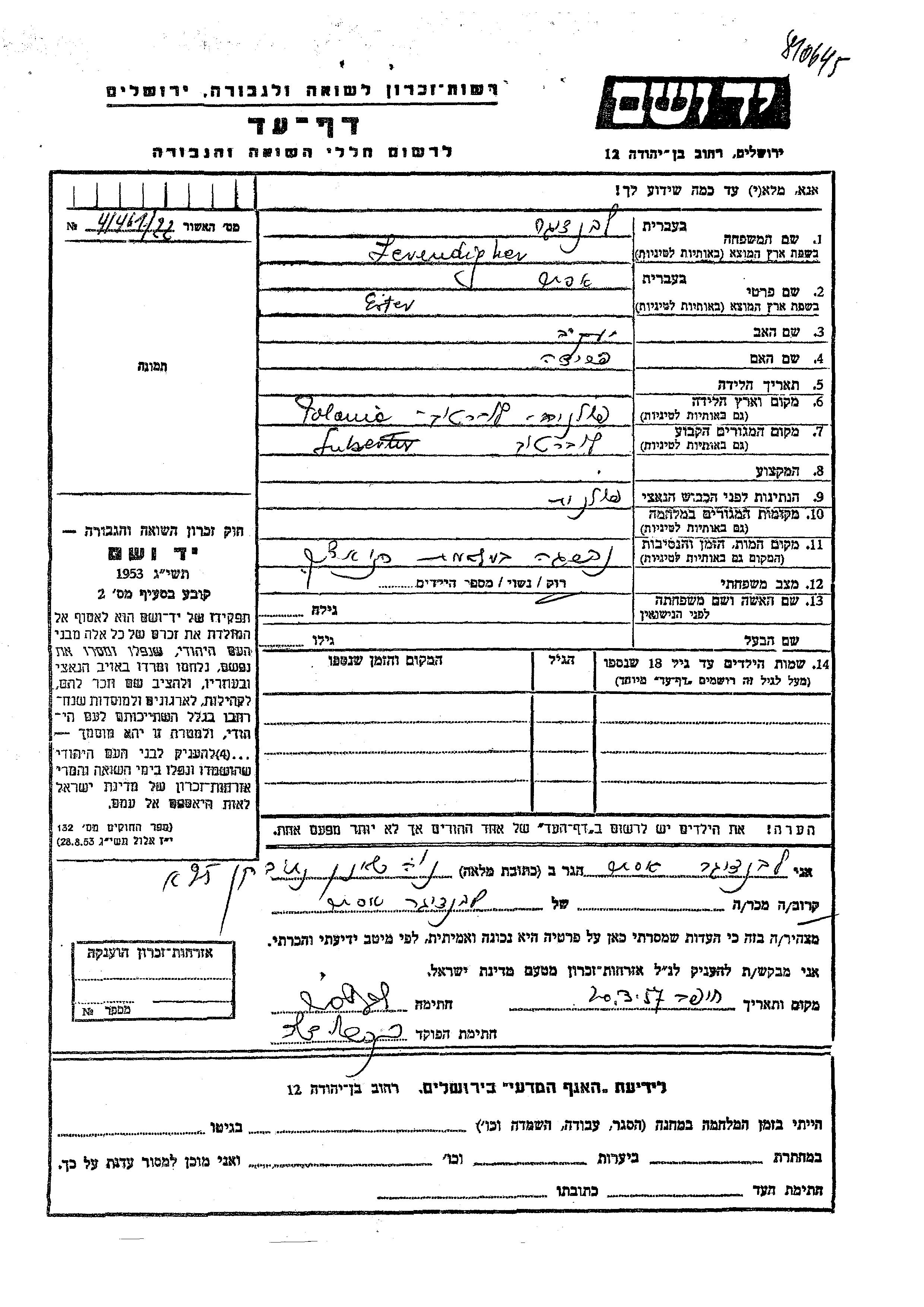 Levendigher Lebendiger Ester Lubartow, Polen Gedenkblatt
