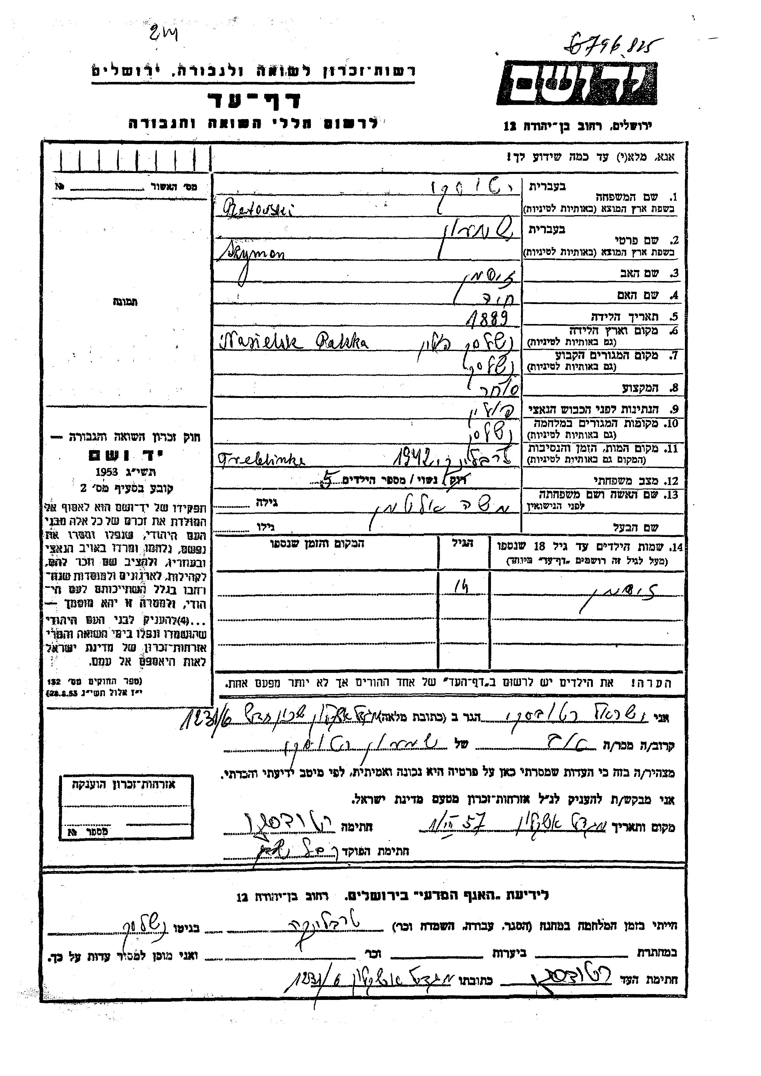 Zisman Retovski. Vor dem Zweiten Weltkrieg lebte er in Nasielsk, Polen.