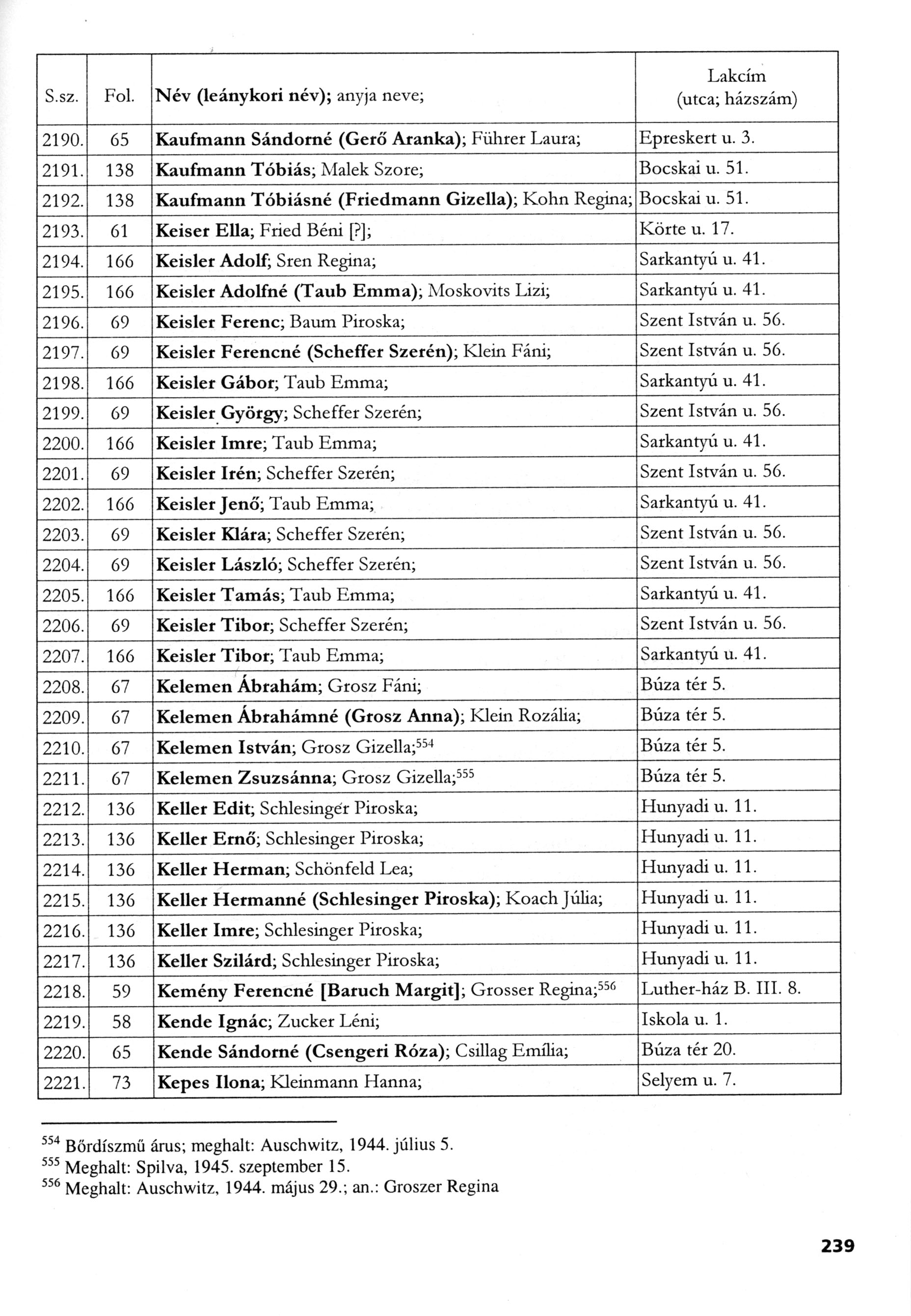 Keisler | Szerén | Nyiregyhaza, Ungarn | Verfolgtenliste | |