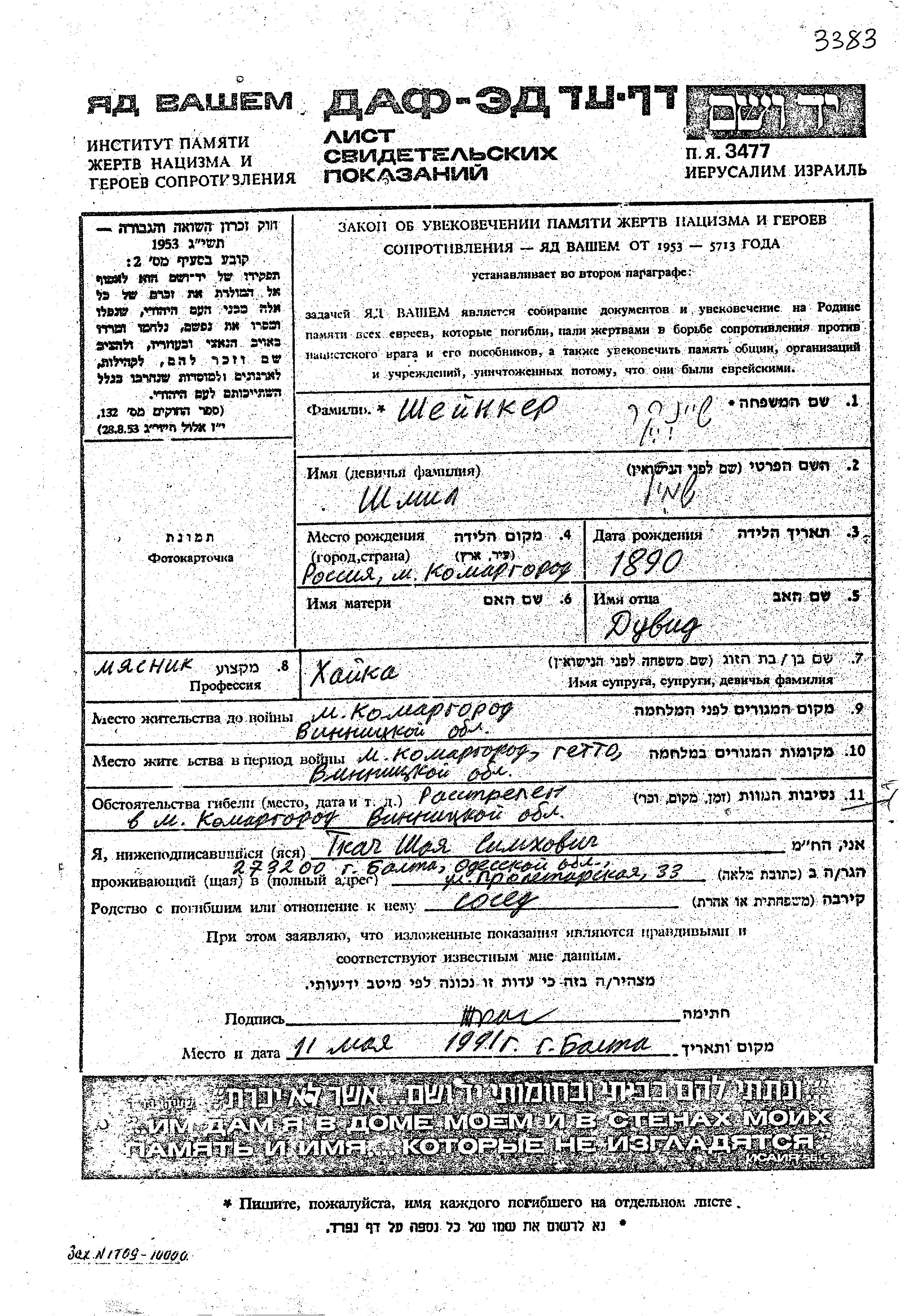 Sheynker | Shmil | 1890 | Komargorod, Ukraine (UdSSR) | Verfolgtenliste |