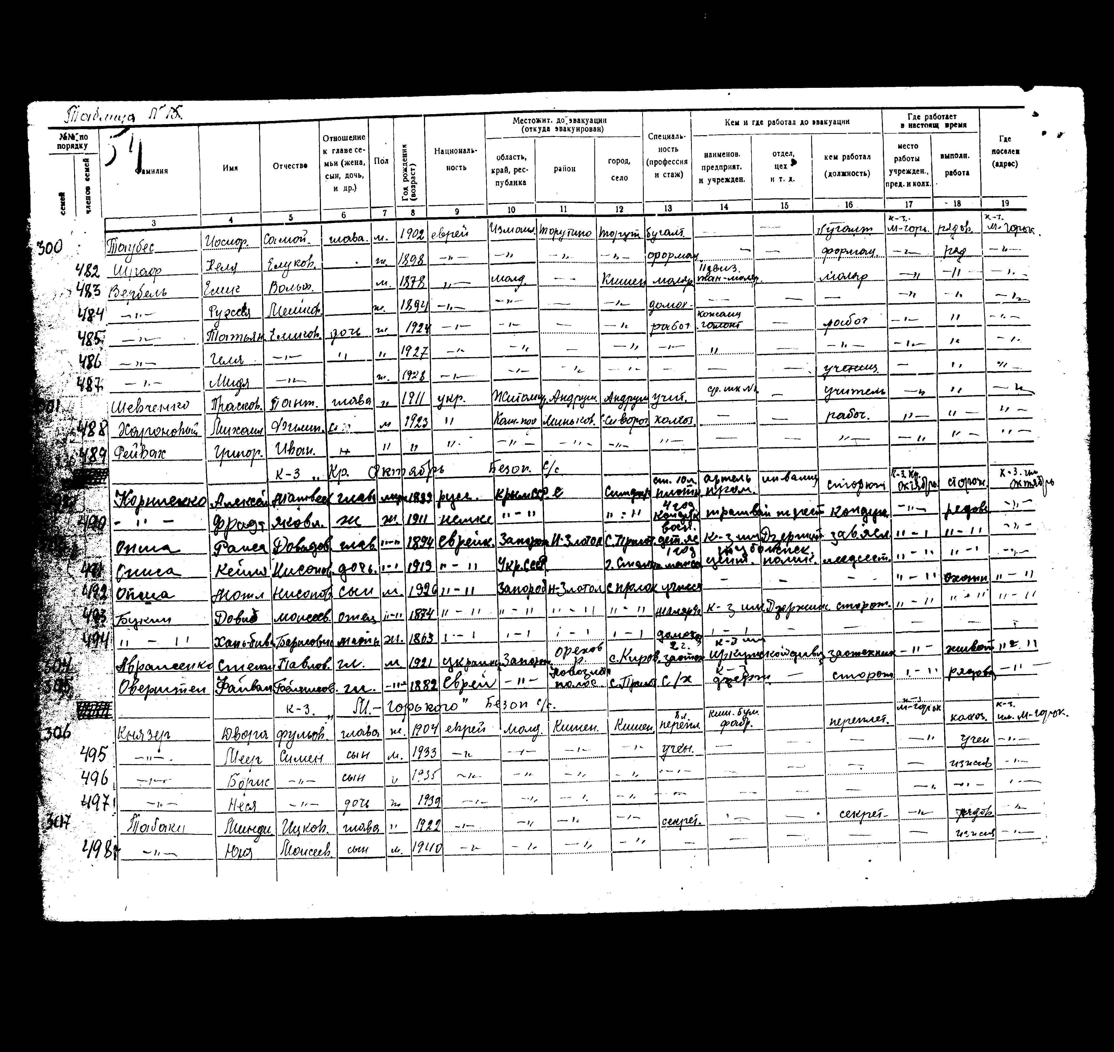 Verbel Tatiyana 1924 Kishinev, Rumänien Evakuiertenliste