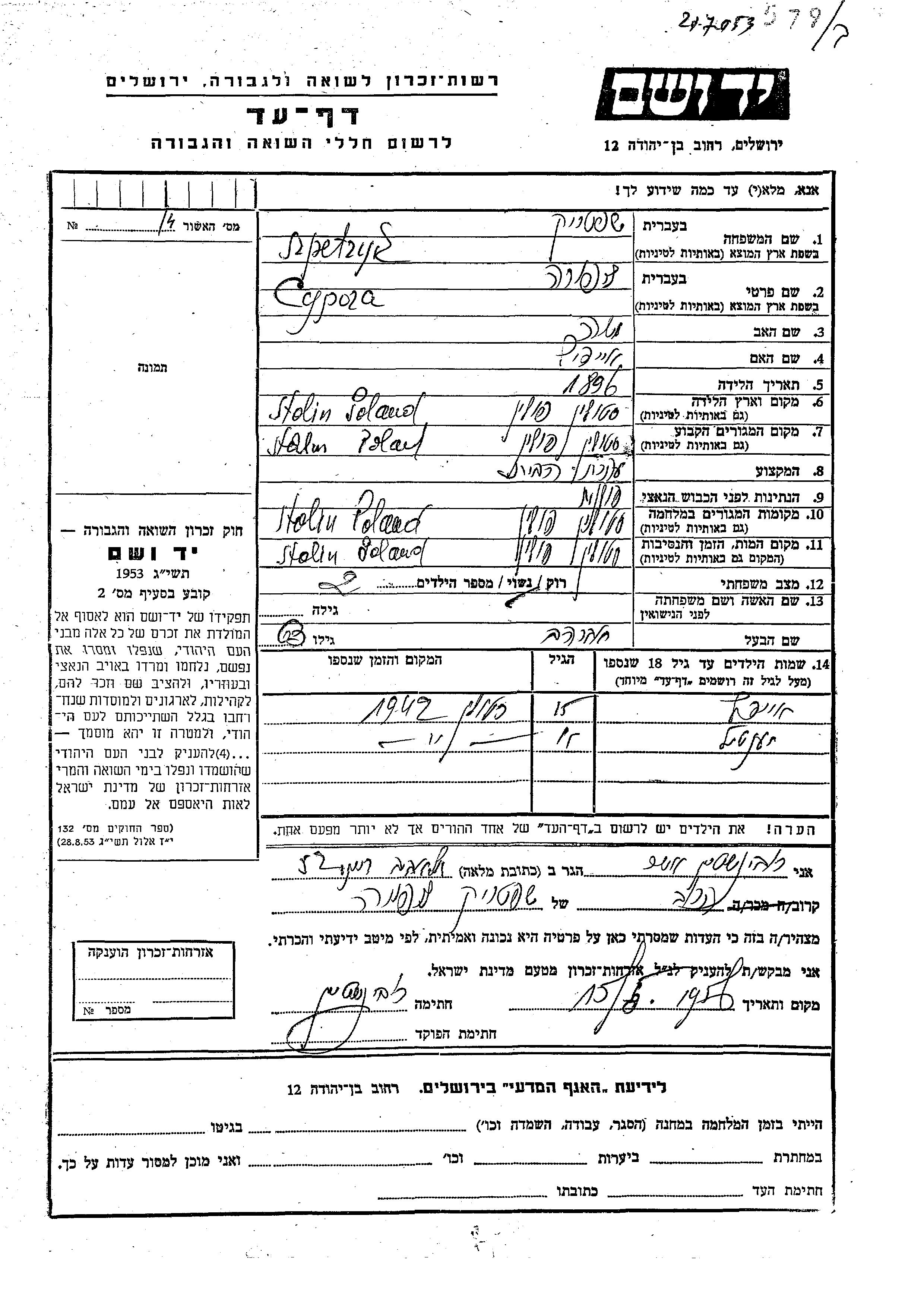 Eidil Szpetryk. Vor dem Zweiten Weltkrieg lebte sie in Stolin, Polen.