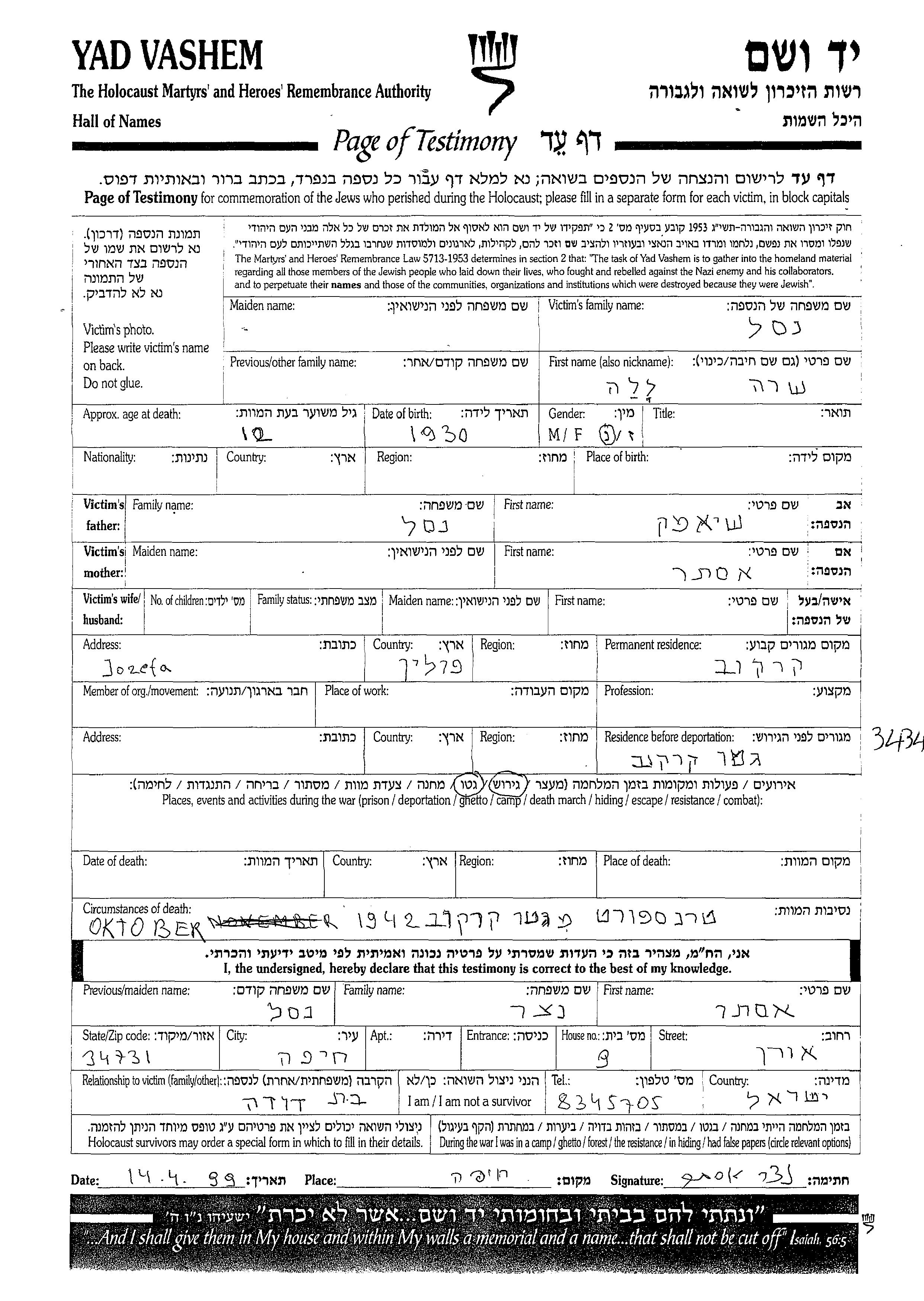 Lala Sara Nessel wurde im Jahr 1930 geboren. Vor dem Zweiten Weltkrieg lebte sie in Krakow, Polen.