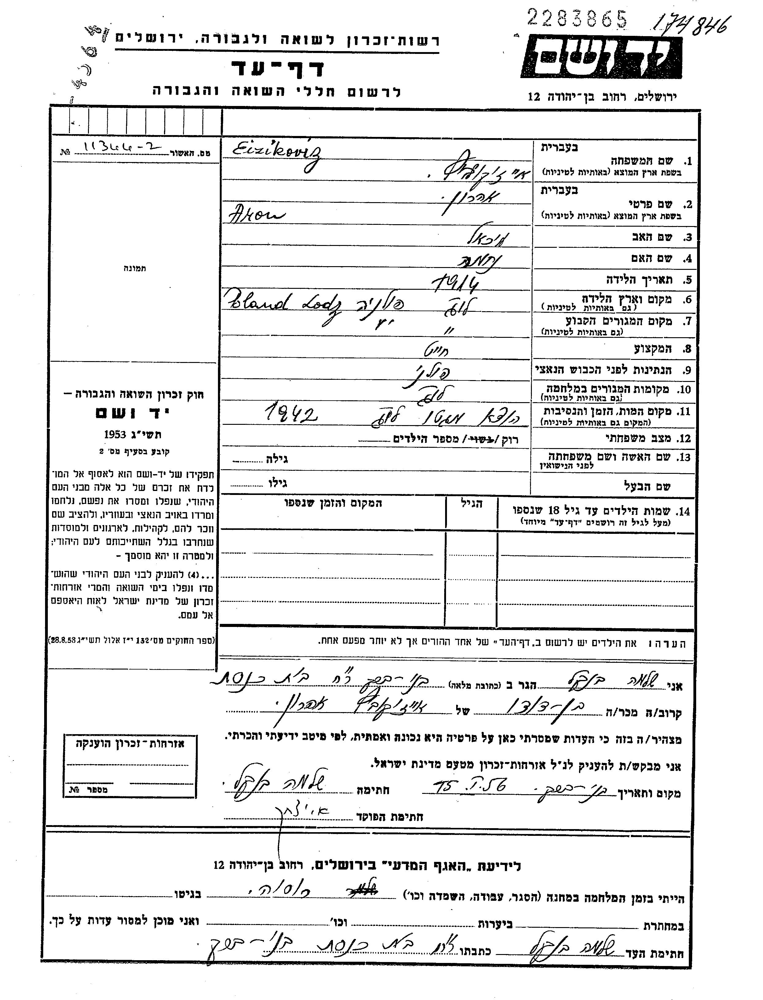Aron Eizikoviz wurde im Jahr 1914 in Lodz, Polen geboren. Vor dem Zweiten Weltkrieg lebte er in Lodz, Polen.