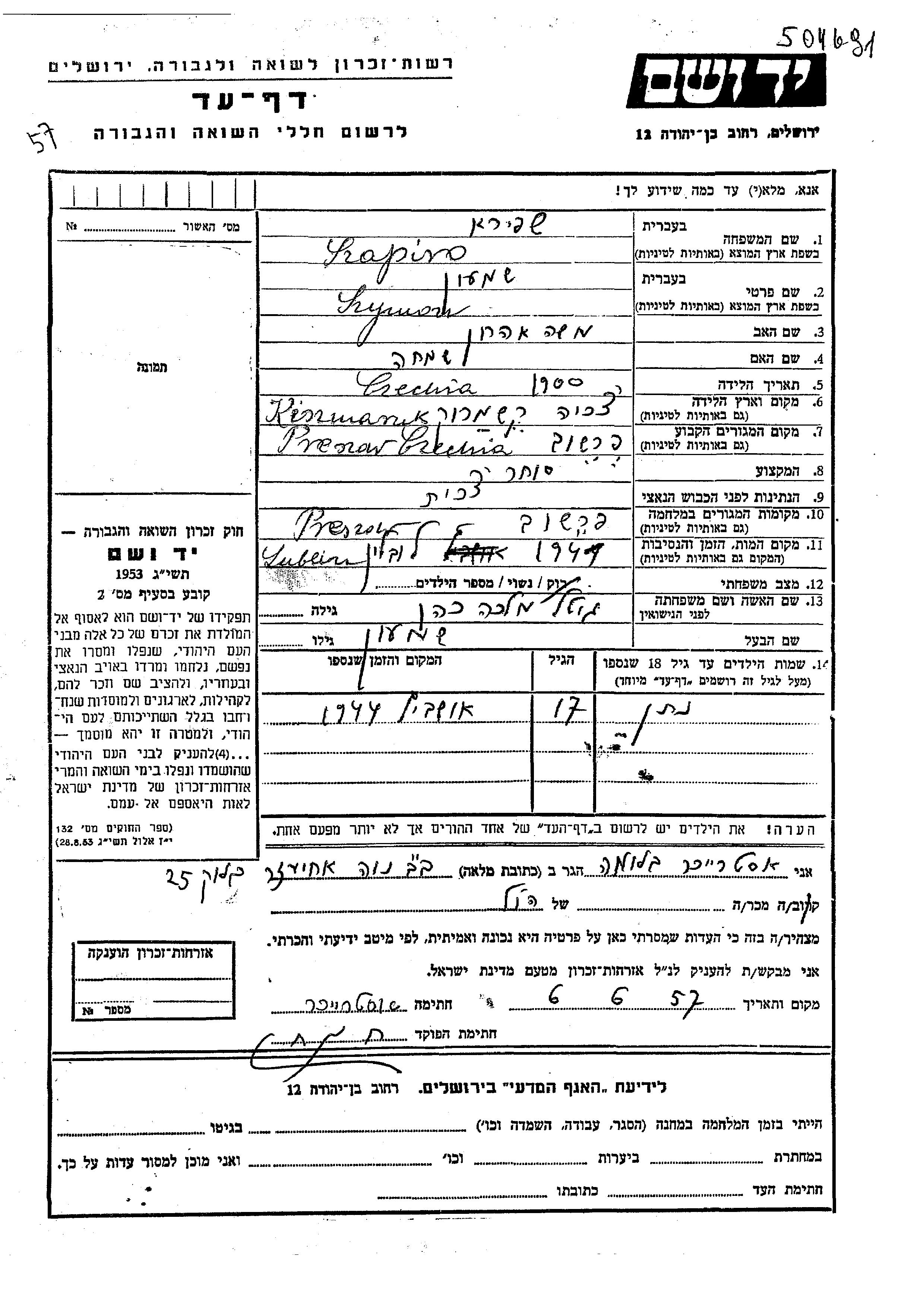 Szymon wurde in der Schoah ermordet. Todesort: Lublin, Polen im Jahr 1941.